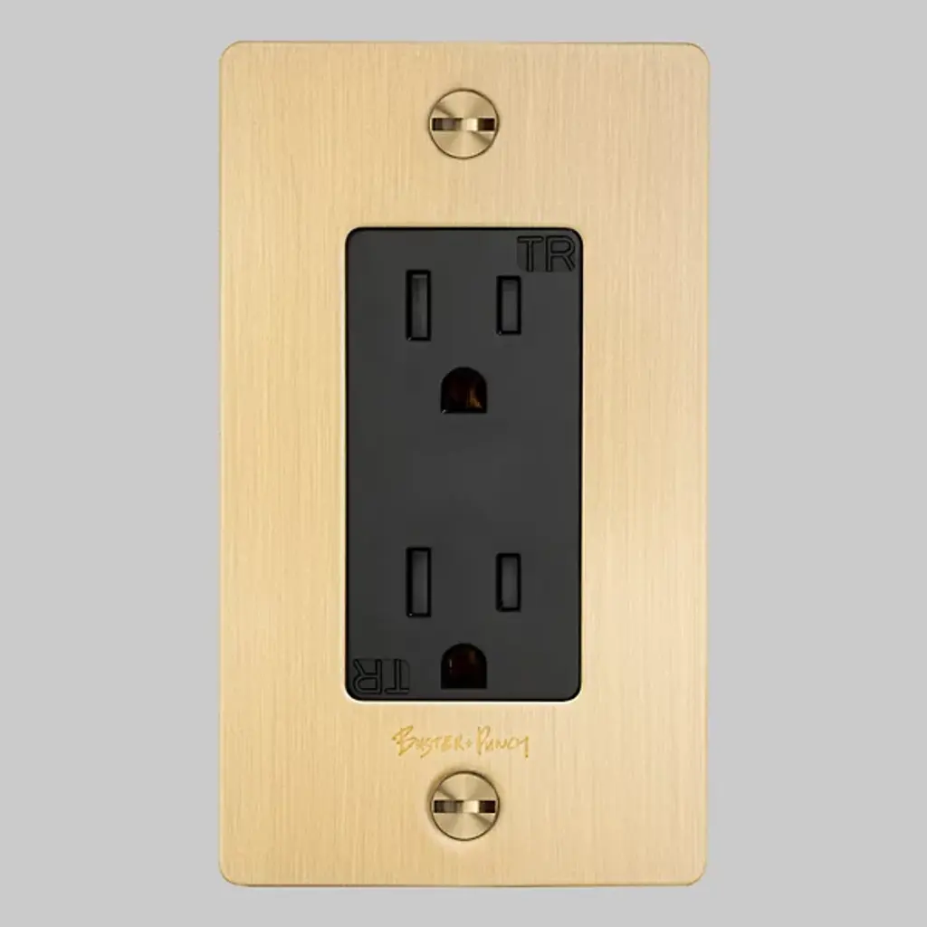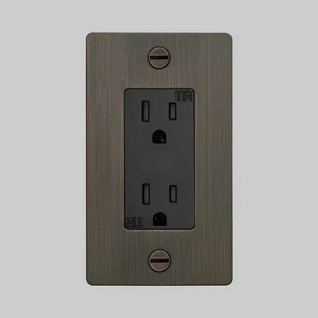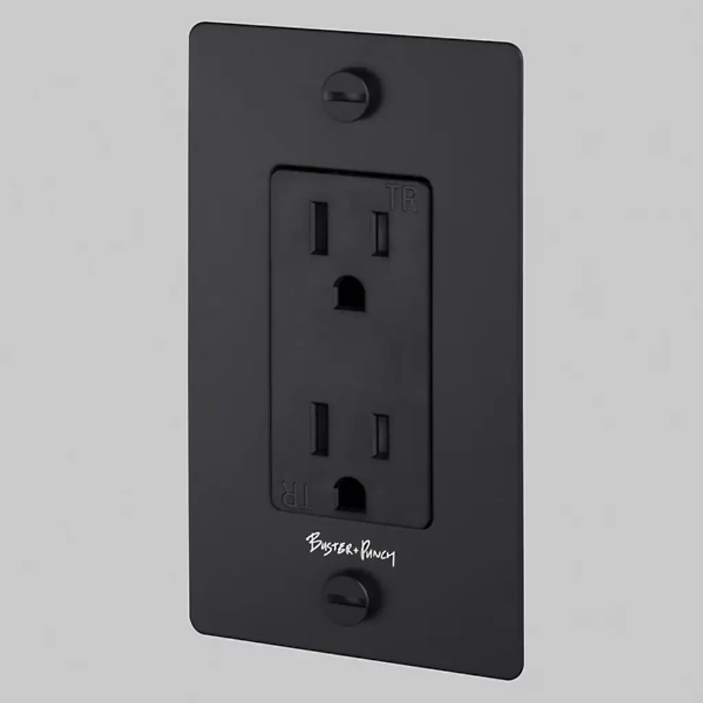 Stay charged with the 1-Gang Duplex Outlet from Buster + Punch. Taking on a linear shape, this outlet is composed of stainless steel, giving your home an industrial aesthetic. The 1-Gang Duplex Outlet is a 15 Amp, 125V AC, 60 Hz outlet. A streamlined wall plate is included with coin screws.