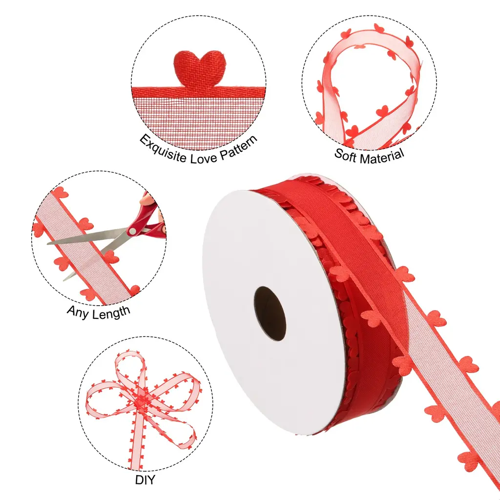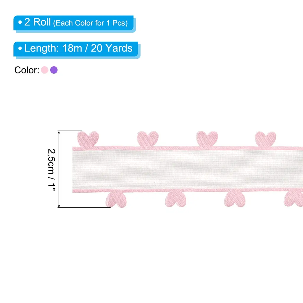This heart shape organza ribbon set is suitable for decorating various items to add beauty. Not only suitable for wrapping holiday gifts, it can also be used to decorate bouquets, enhance your home decoration, add beauty to your daily crafts, and create a festive and lovely feeling.SpecificationColor: Red, PinkMaterial: ChiffonSize: 18m x 2.5cm / 20 yard x 1 inch (LxW)Package List: 2 Rolls x RibbonAdvantage:The heart shape ribbon is made of good quality chiffon material, which has a soft texture, good breathability, drape, easy to design shape when decorating gifts, and also has good wear resistance so that can extend the service life. Moreover, the decorative ribbon does not easily fade, ensuring long-term beauty. Gift wrapping ribbons of any length can be cut according to needs for handmade designs, DIY birthday gifts, doors, bouquets, cakes, etc.InstructionUse scissors to cut to the length of the red organza ribbon you want and you can start decorating.NOTEDue to lighting effects, monitor brightness contrast settings, etc., there may be slight differences in the color tone between the film and the actual object. Please allow a 1-2 cm difference due to manual measurement.