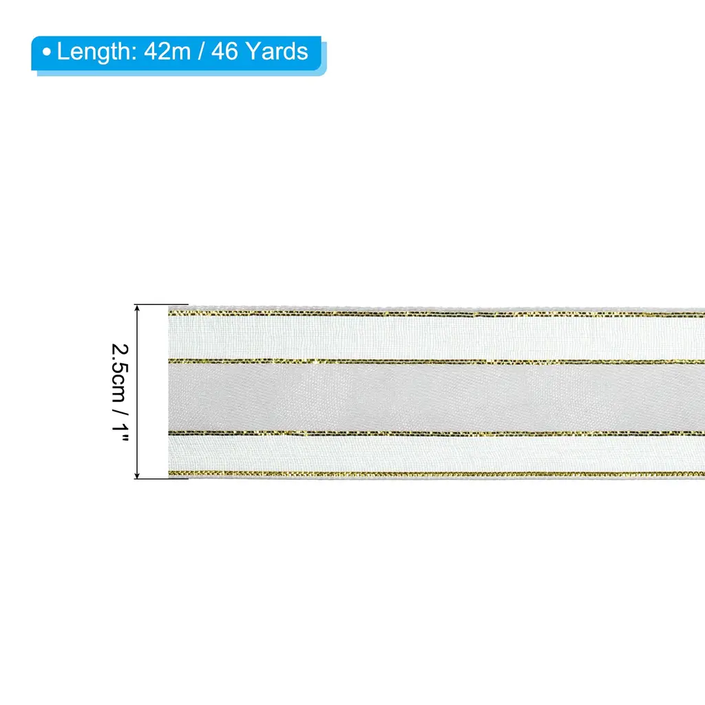 This golden edge organza ribbon is suitable for decorating various items to add beauty. Not only suitable for wrapping holiday gifts, it can also be used to decorate bouquets or cakes, enhance your home decoration, add beauty to your daily crafts, and create a high-end and sophisticated feeling.SpecificationColor: WhiteMaterial: ChiffonSize: 42m x 2.5cm /46 yard x 1 inch (LxW)Package List: 1Roll x RibbonAdvantage:The gold edge floral ribbon is made of good quality chiffon material, which has a soft texture, good breathability, drape, easy to design shape when decorating gifts, and also has good wear resistance so that can extend the service life. Moreover, the decorative ribbon with a semi-transparent color does not easily fade, ensuring long-term beauty. Organza chiffon ribbons of any length can be cut according to needs for handmade designs, DIY birthday gifts, doors, bouquets, cakes, etc.InstructionUse scissors to cut to the length of the organza ribbon you want and you can start decorating.NOTEDue to lighting effects, monitor brightness contrast settings, etc., there may be slight differences in the color tone between the film and the actual object.Please allow a 1-2 cm difference due to manual measurement.