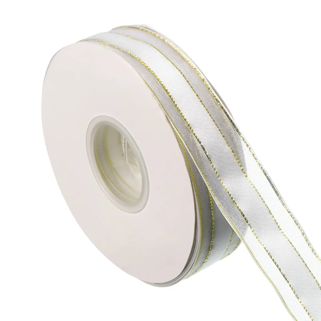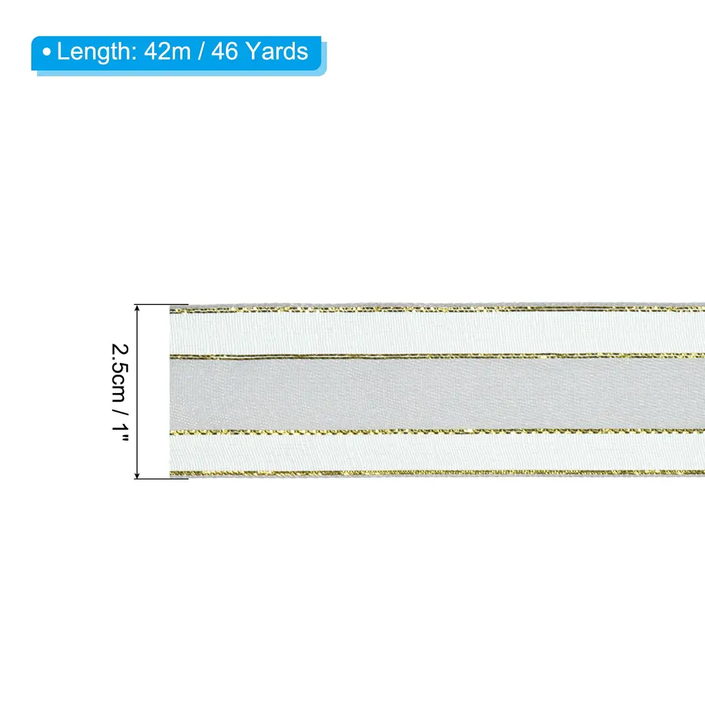 This golden edge organza ribbon is suitable for decorating various items to add beauty. Not only suitable for wrapping holiday gifts, it can also be used to decorate bouquets or cakes, enhance your home decoration, add beauty to your daily crafts, and create a high-end and sophisticated feeling.SpecificationColor: WhiteMaterial: ChiffonSize: 42m x 2.5cm /46 yard x 1 inch (LxW)Package List: 1Roll x RibbonAdvantage:The gold edge floral ribbon is made of good quality chiffon material, which has a soft texture, good breathability, drape, easy to design shape when decorating gifts, and also has good wear resistance so that can extend the service life. Moreover, the decorative ribbon with a semi-transparent color does not easily fade, ensuring long-term beauty. Organza chiffon ribbons of any length can be cut according to needs for handmade designs, DIY birthday gifts, doors, bouquets, cakes, etc.InstructionUse scissors to cut to the length of the organza ribbon you want and you can start decorating.NOTEDue to lighting effects, monitor brightness contrast settings, etc., there may be slight differences in the color tone between the film and the actual object.Please allow a 1-2 cm difference due to manual measurement.