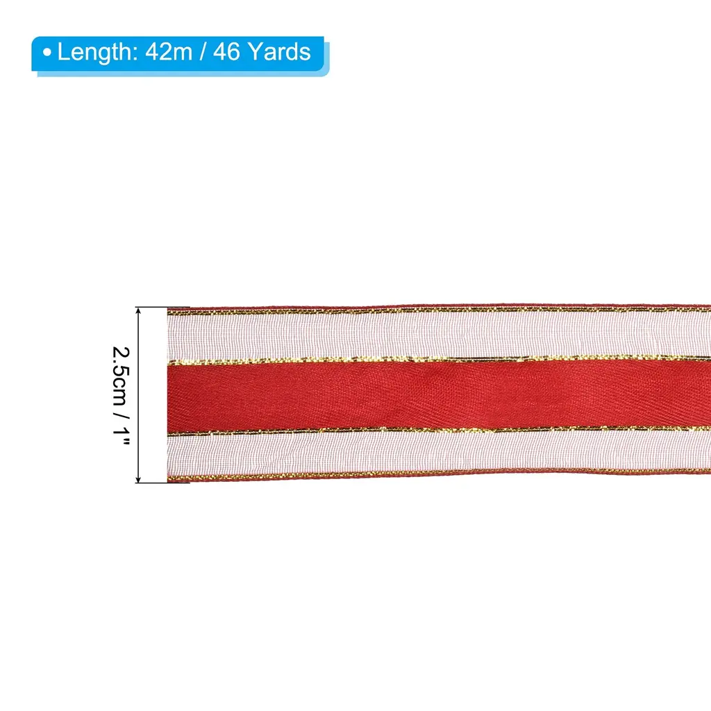 1 Inch X 46 Yd Organza Chiffon Ribbon Golden Edge Gift Wrapping Ribbon - Pink