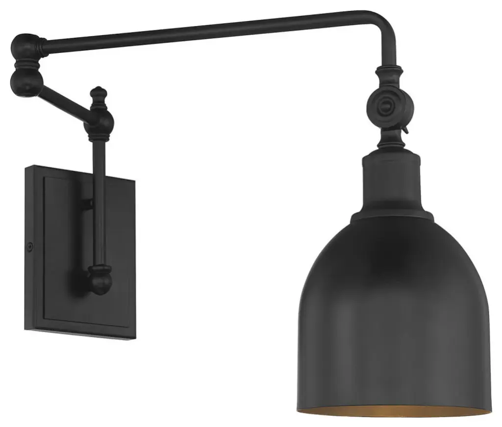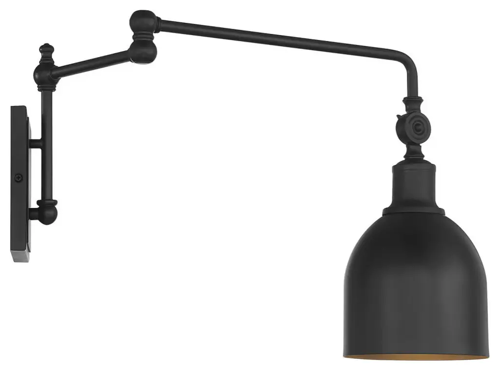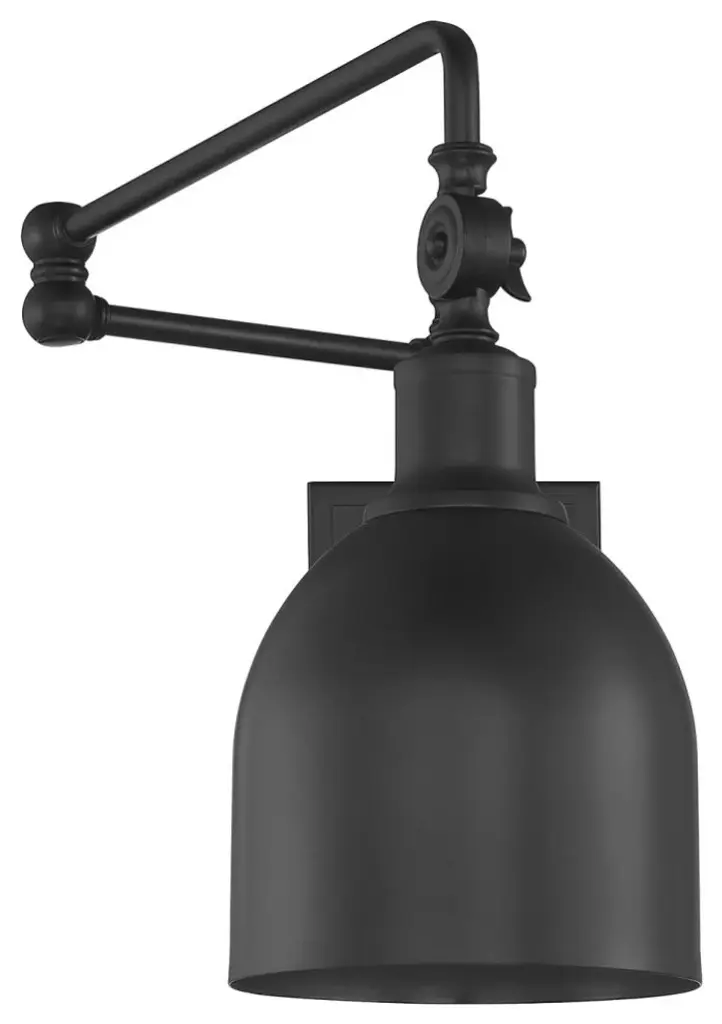 Use this Meridian 1-light adjustable wall sconce to bring convenient, stylish lighting exactly where you need it! It has a vintage-inspired look that is great for farmhouse, industrial and even midcentury modern style spaces. Finished in matte black, it is also damp area rated. This sconce is 13.63 inches in height and 6 inches in width with a backplate that is 6 inches in height, 4.50 inches in width and 0.75 inch in depth. It extends up to 24 inches from the wall and uses one medium size bulb of up to 60 watts. It is dimmable and LED compatible. UL/CUL listed.
