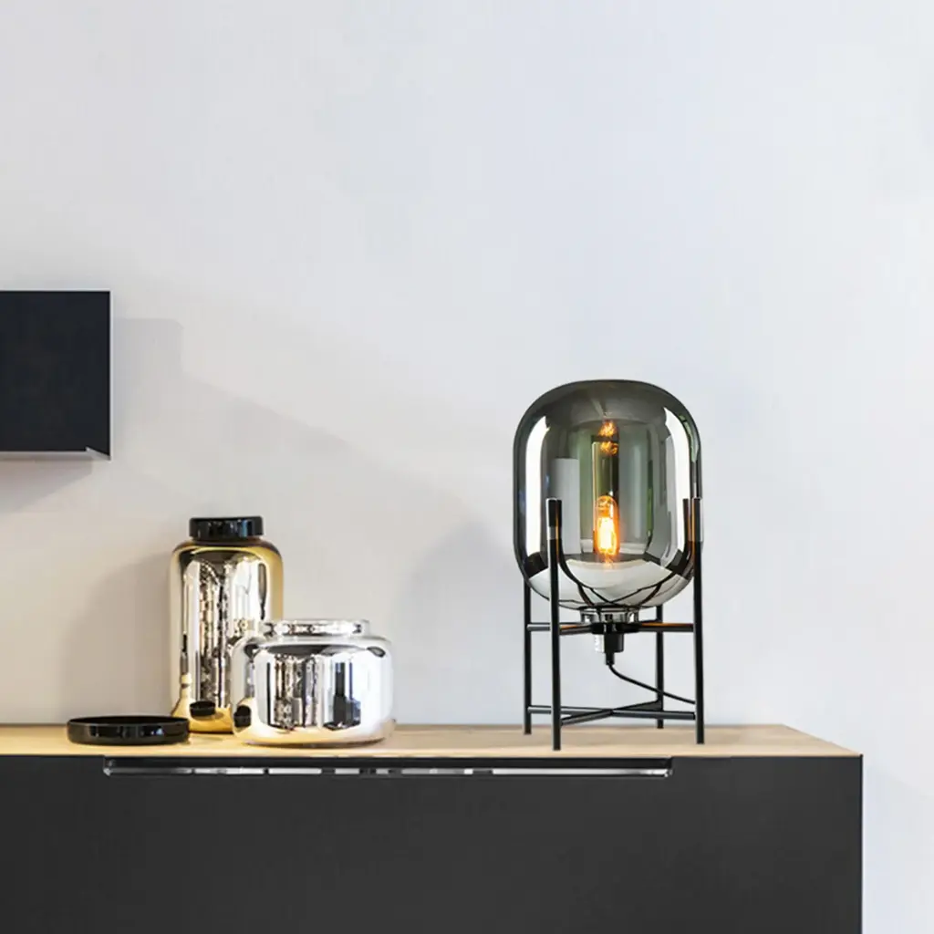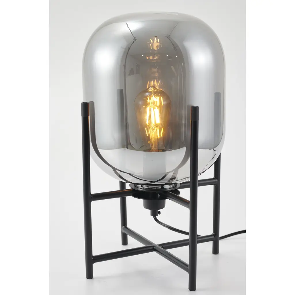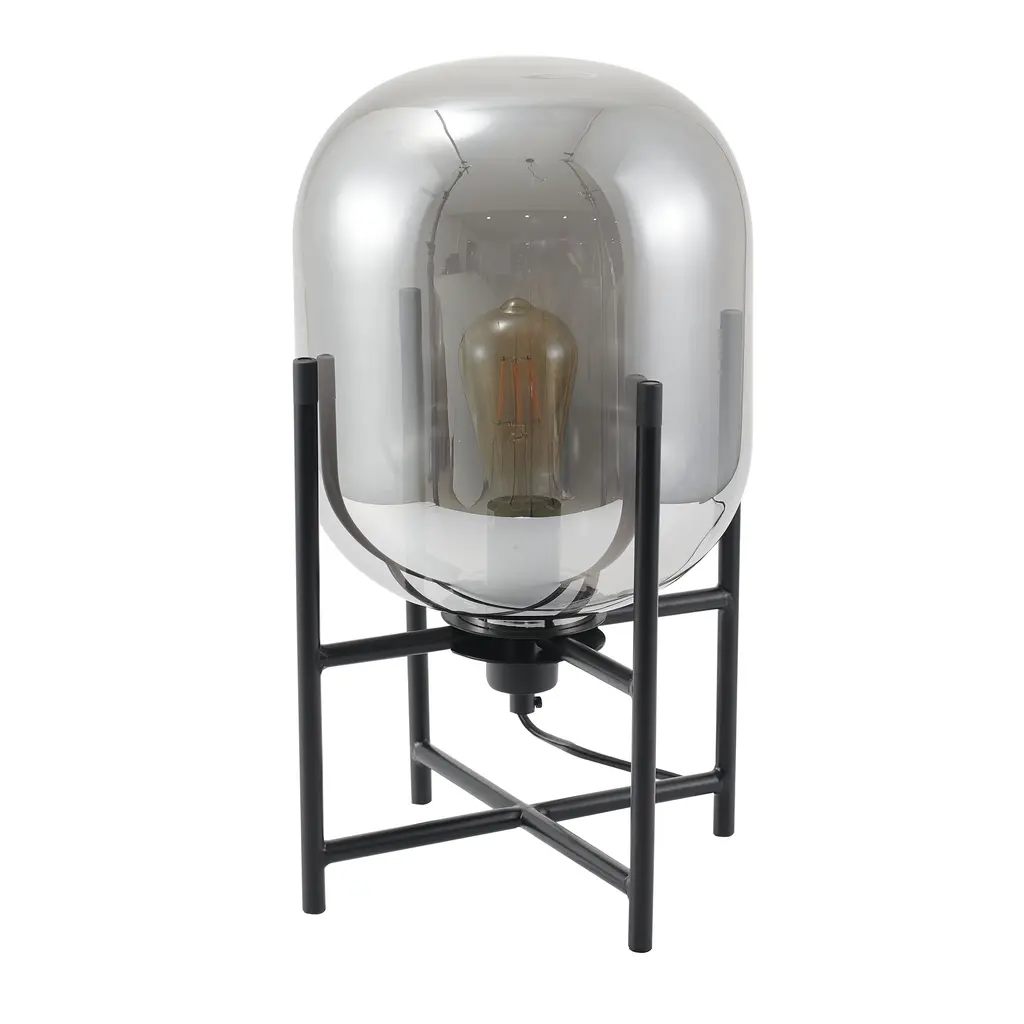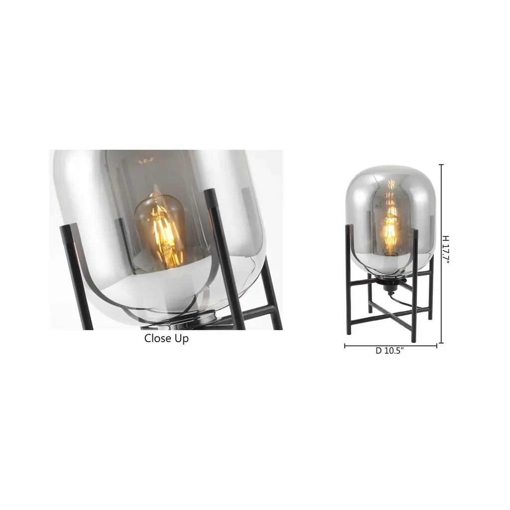 1 Light Black Metal Base Table Lamp With Smoke Glass Shade - Matte Black
