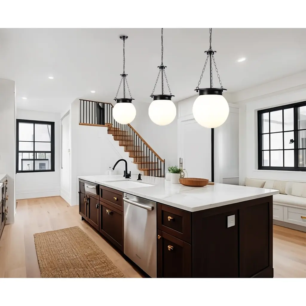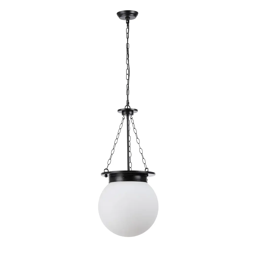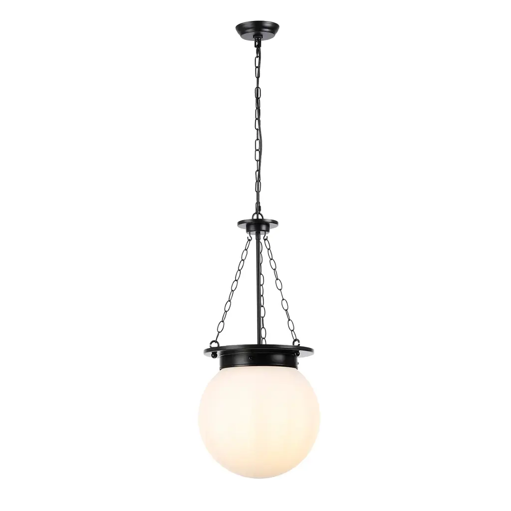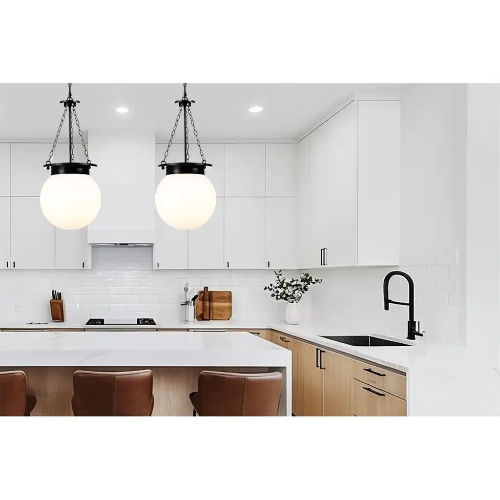 The 1-Light Novelty Black Pendant Lamp boasts a sleek, modern design with a bold black finish. It features an elegant opal glass shade that diffuses light, creating a soft, welcoming glow. Hanging from a chic chain, this pendant lamp brings a touch of sophistication to any room. Ideal for kitchens, dining areas, or living spaces, its minimalist yet striking style complements both contemporary and industrial interiors, offering a versatile and stylish lighting option for various settings. Features: