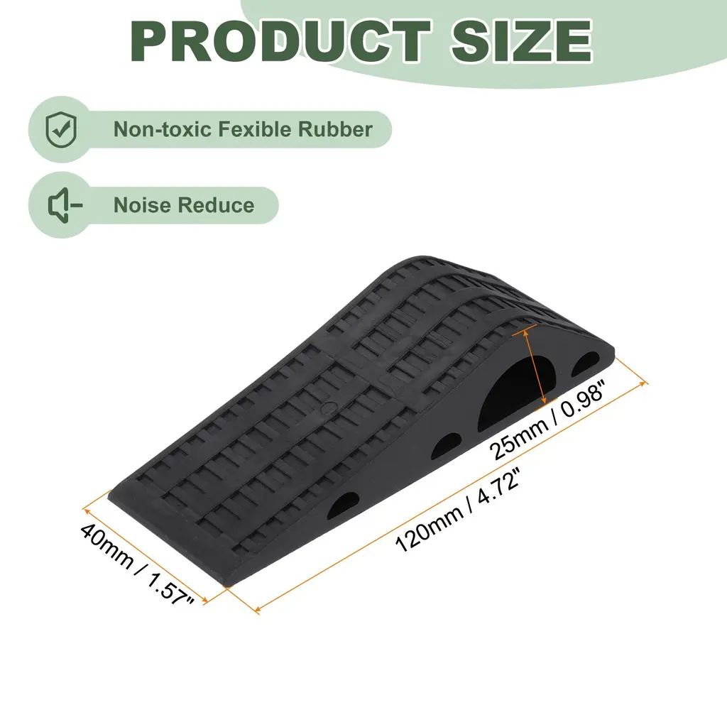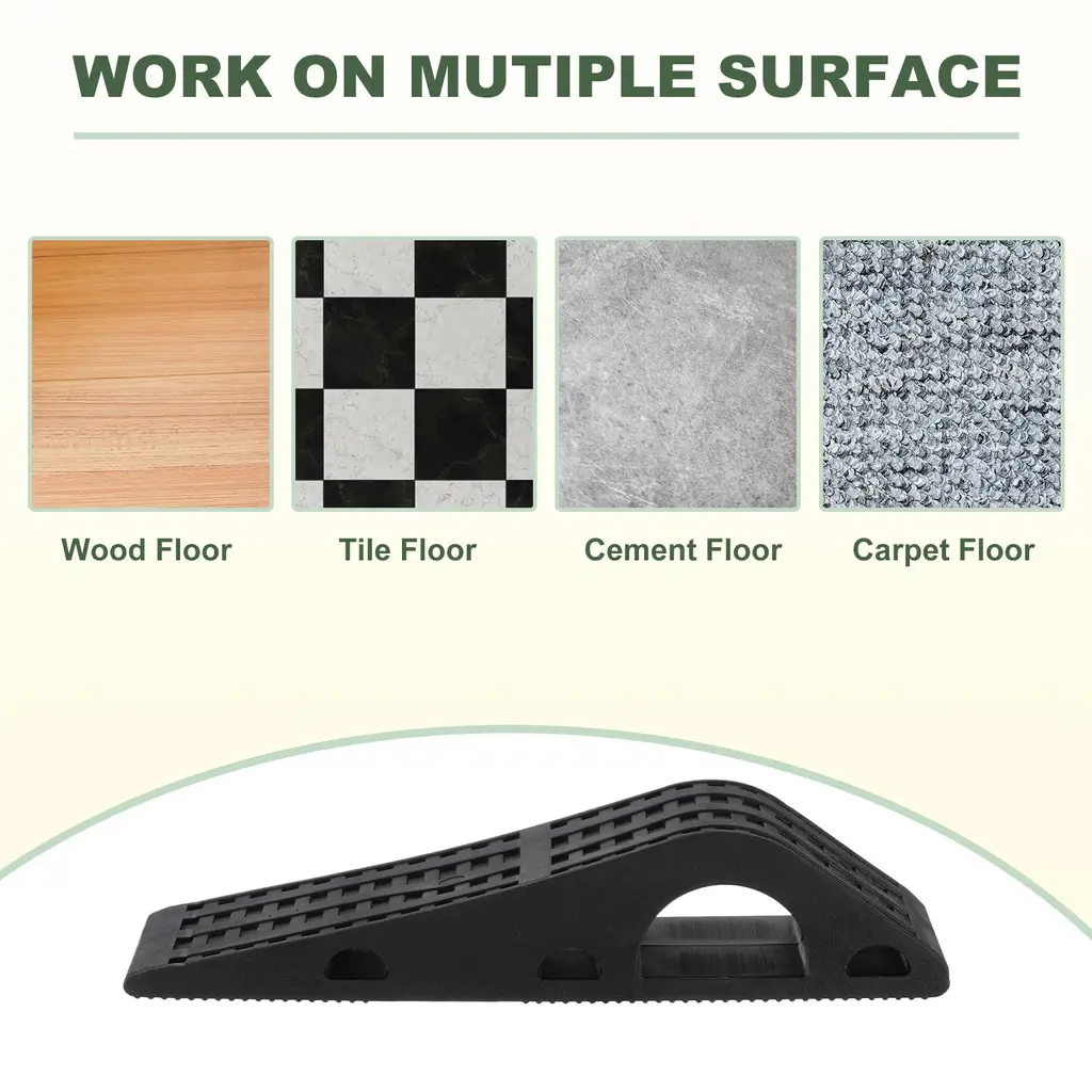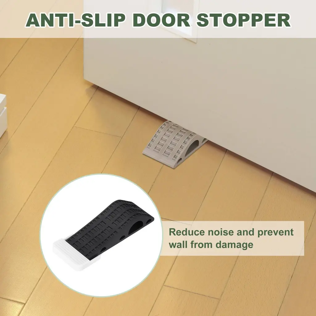 Description :Anti-Slip Design - The door stopper has a double-sided anti-slip function, with a horizontal stripe design on the surface, which increases the friction with the door and can easily fix the position of the door. Stackable design and hollow design make it suitable for a wider range of gaps, and evenly distributed force, raises its grip and is not easy to move.Material - The door stoppers for the bottom of the door are made of TPR, soft and non-slip, they will not scratch the surface of the floor or door; It has elasticity and can adapt to larger gaps, and can also be used on floors of various materials (wooden boards, ceramic tiles, and so on), and the trapezoidal design also provides cushioning force when closing the door.Easy to Use and Store - Place the door stopper on the floor at a suitable distance, which is easy to replace and does not affect cleaning. Comes with a holder that you can stick to the door or wall for storage the door stopper when not in use; In addition to being used as a buffer and fixing when opening the door, the door stopper can also be used when closing the door to stop it from opening from the outside.Wide Applications - These door stops can be applied to various occasions, such as offices, homes, shops, hotels, etc; These door stops ensure that doors do not accidentally slip and close, so you don't have to worry about the door suddenly closing in winds, protecting the door and walls.Specifications:Material: TPRColor: BlackTotal Size: 120 mm x 40 mm x 25 mm / 4.72 Inch x 1.57 Inch x 0.98 Inch (L*W*H)Fit for distances with door gaps: More than 25 mm / 0.98 InchPackage Content:1 Pcs x Door Stoppers with Holder