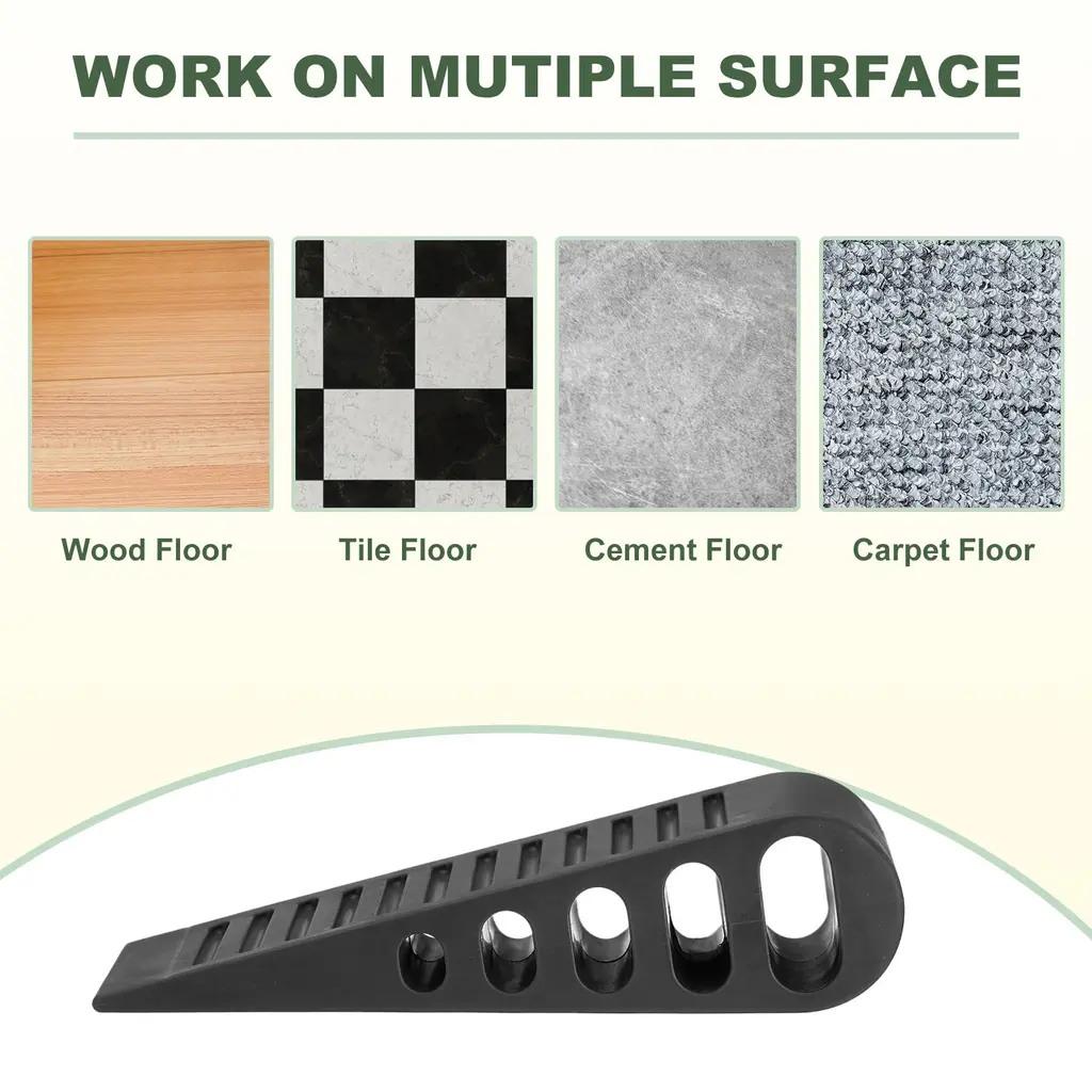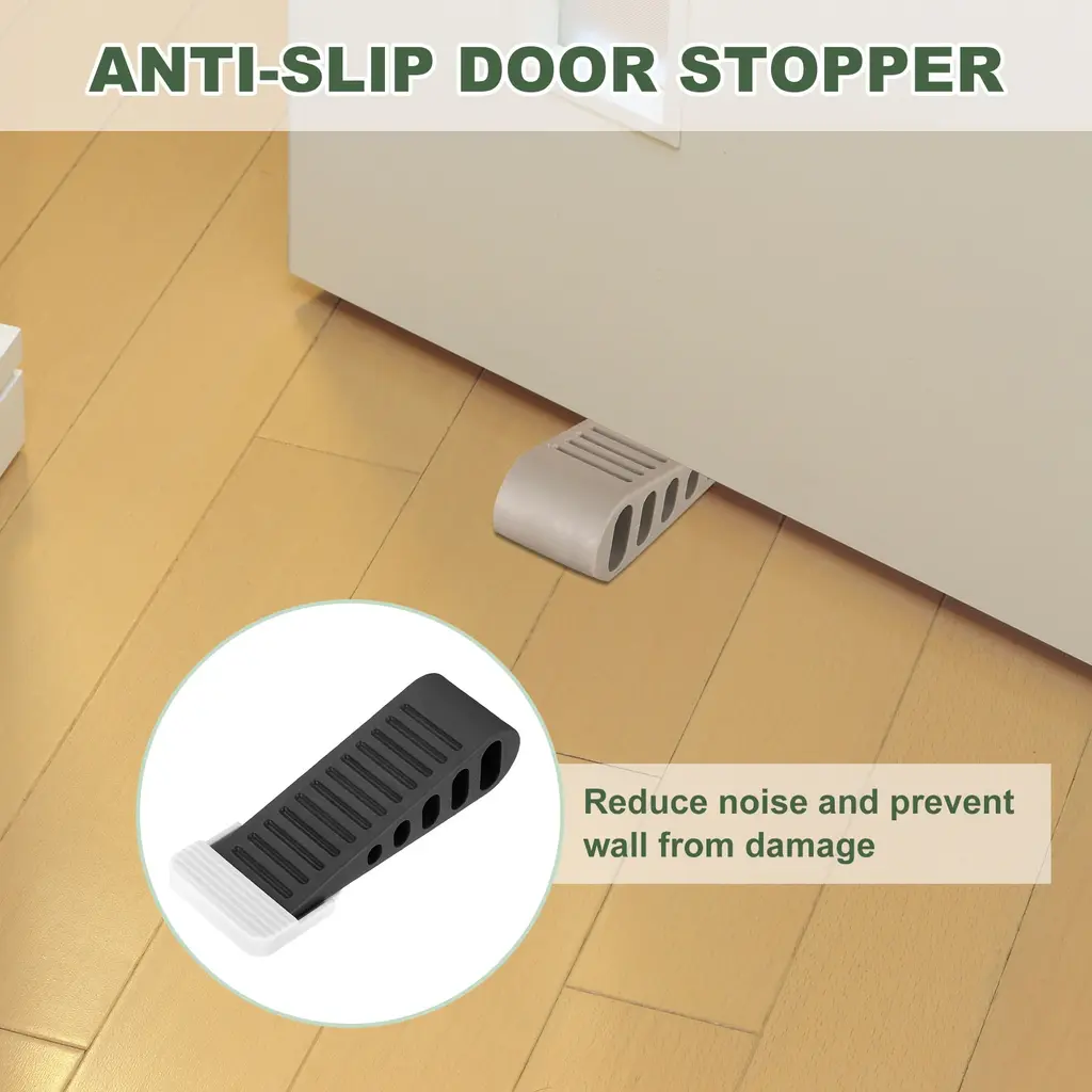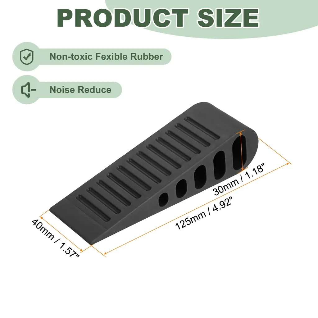 Description :Anti-Slip Design - The door stopper has a double-sided anti-slip function, with a horizontal stripe design on the surface, which increases the friction with the door and can easily fix the position of the door. Stackable design and hollow design make it suitable for a wider range of gaps, and evenly distributed force, raises its grip and is not easy to move.Material - The door stoppers for the bottom of the door are made of TPR, soft and non-slip, they will not scratch the surface of the floor or door; It has elasticity and can adapt to larger gaps, and can also be used on floors of various materials (wooden boards, ceramic tiles, and so on), and the trapezoidal design also provides cushioning force when closing the door.Easy to Use and Store - Place the door stopper on the floor at a suitable distance, which is easy to replace and does not affect cleaning. Comes with a holder that you can stick to the door or wall for storage the door stopper when not in use; In addition to being used as a buffer and fixing when opening the door, the door stopper can also be used when closing the door to stop it from opening from the outside.Wide Applications - These door stops can be applied to various occasions, such as offices, homes, shops, hotels, etc; These door stops ensure that doors do not accidentally slip and close, so you don't have to worry about the door suddenly closing in winds, protecting the door and walls.Specifications:Material: TPRColor: BlackTotal Size: 125 mm x 40 mm x 30 mm / 4.92 Inch x 1.57 Inch x 1.18 Inch (L*W*H)Fit for distances with door gaps: More than 30 mm / 1.18 InchPackage Content:1 Pcs x Door Stoppers with Holder