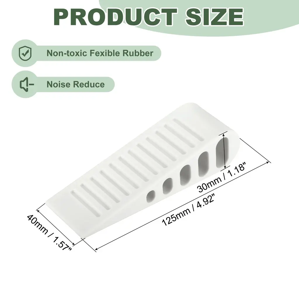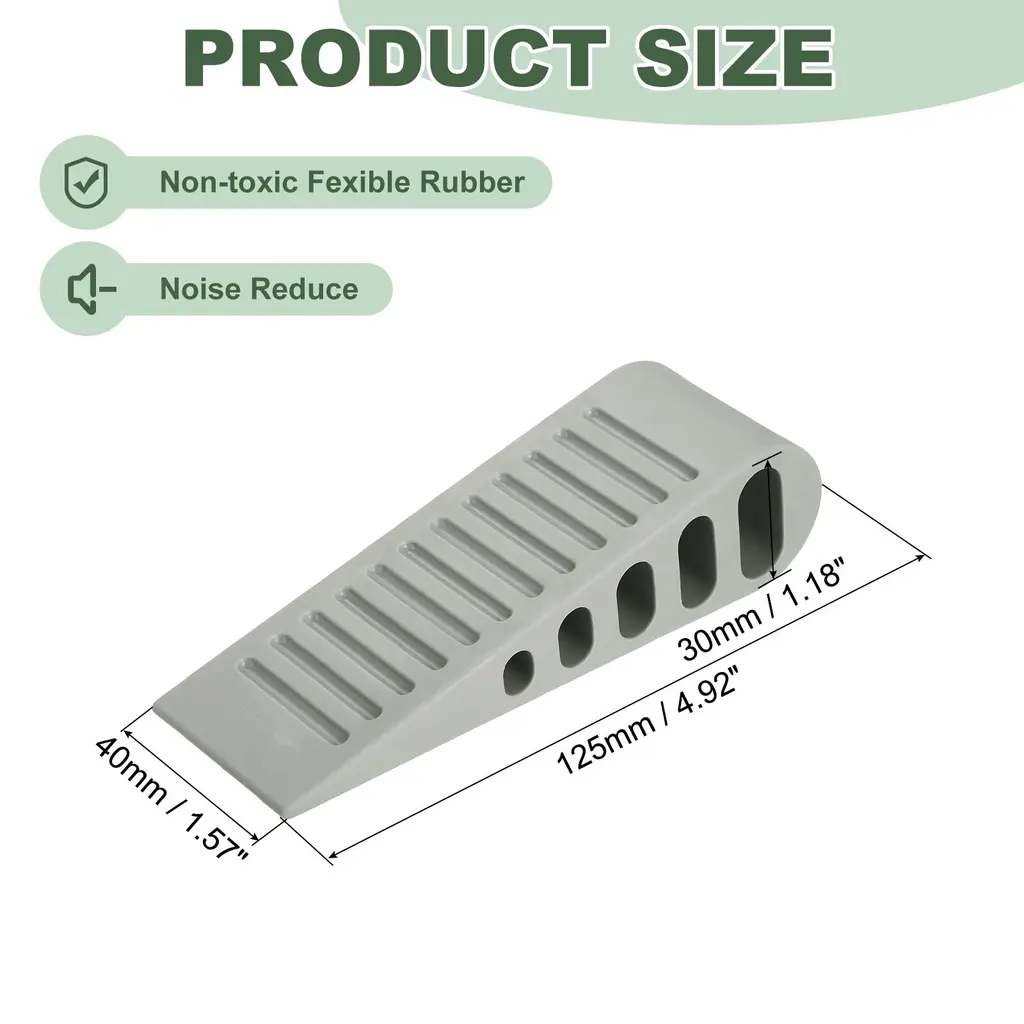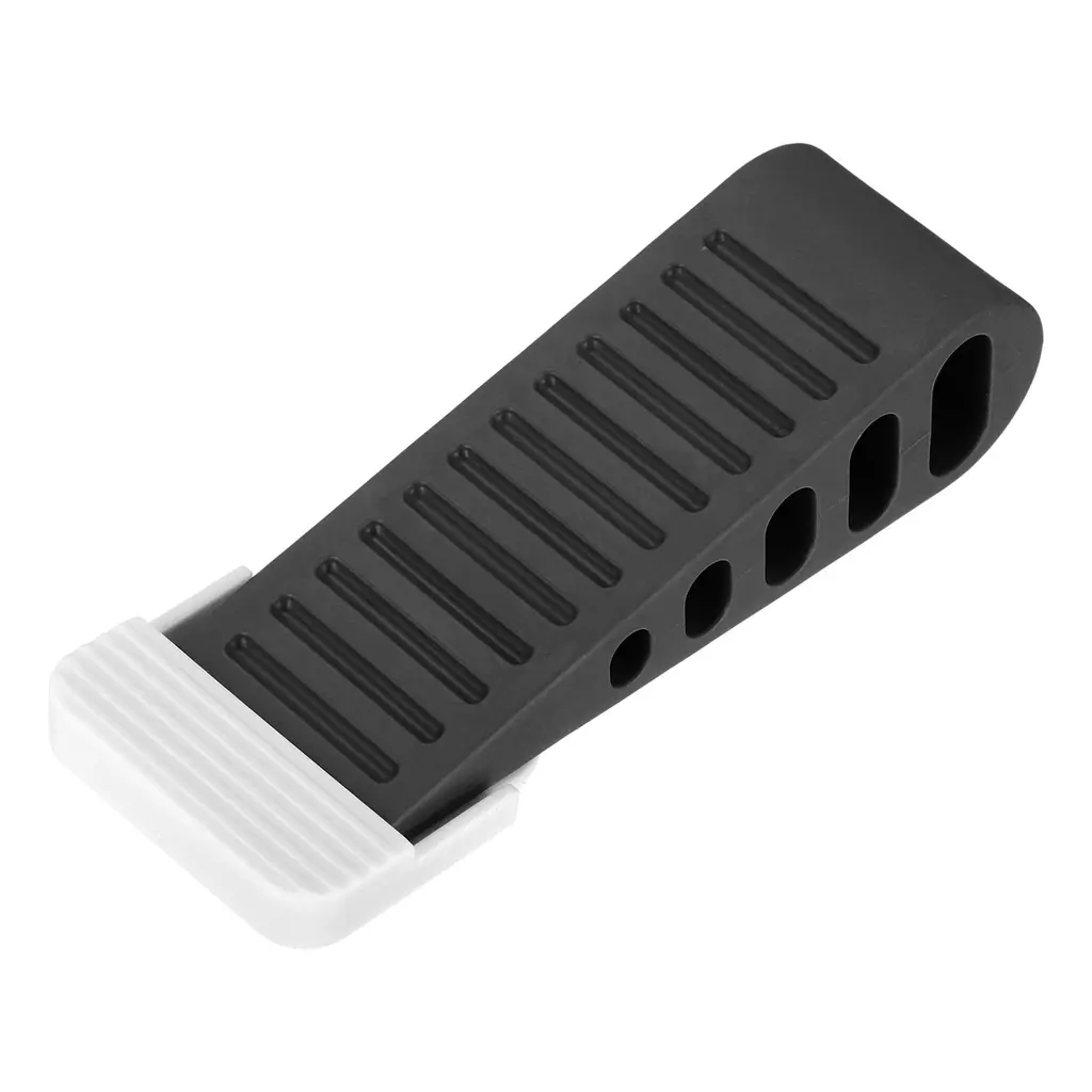 Description :Anti-Slip Design - The door stopper has a double-sided anti-slip function, with a horizontal stripe design on the surface, which increases the friction with the door and can easily fix the position of the door. Stackable design and hollow design make it suitable for a wider range of gaps, and evenly distributed force, raises its grip and is not easy to move.Material - The door stoppers for the bottom of the door are made of TPR, soft and non-slip, they will not scratch the surface of the floor or door; It has elasticity and can adapt to larger gaps, and can also be used on floors of various materials (wooden boards, ceramic tiles, and so on), and the trapezoidal design also provides cushioning force when closing the door.Easy to Use and Store - Place the door stopper on the floor at a suitable distance, which is easy to replace and does not affect cleaning. Comes with a holder that you can stick to the door or wall for storage the door stopper when not in use; In addition to being used as a buffer and fixing when opening the door, the door stopper can also be used when closing the door to stop it from opening from the outside.Wide Applications - These door stops can be applied to various occasions, such as offices, homes, shops, hotels, etc; These door stops ensure that doors do not accidentally slip and close, so you don't have to worry about the door suddenly closing in winds, protecting the door and walls.Specifications:Material: TPRColor: BlackTotal Size: 125 mm x 40 mm x 30 mm / 4.92 Inch x 1.57 Inch x 1.18 Inch (L*W*H)Fit for distances with door gaps: More than 30 mm / 1.18 InchPackage Content:1 Pcs x Door Stoppers with Holder