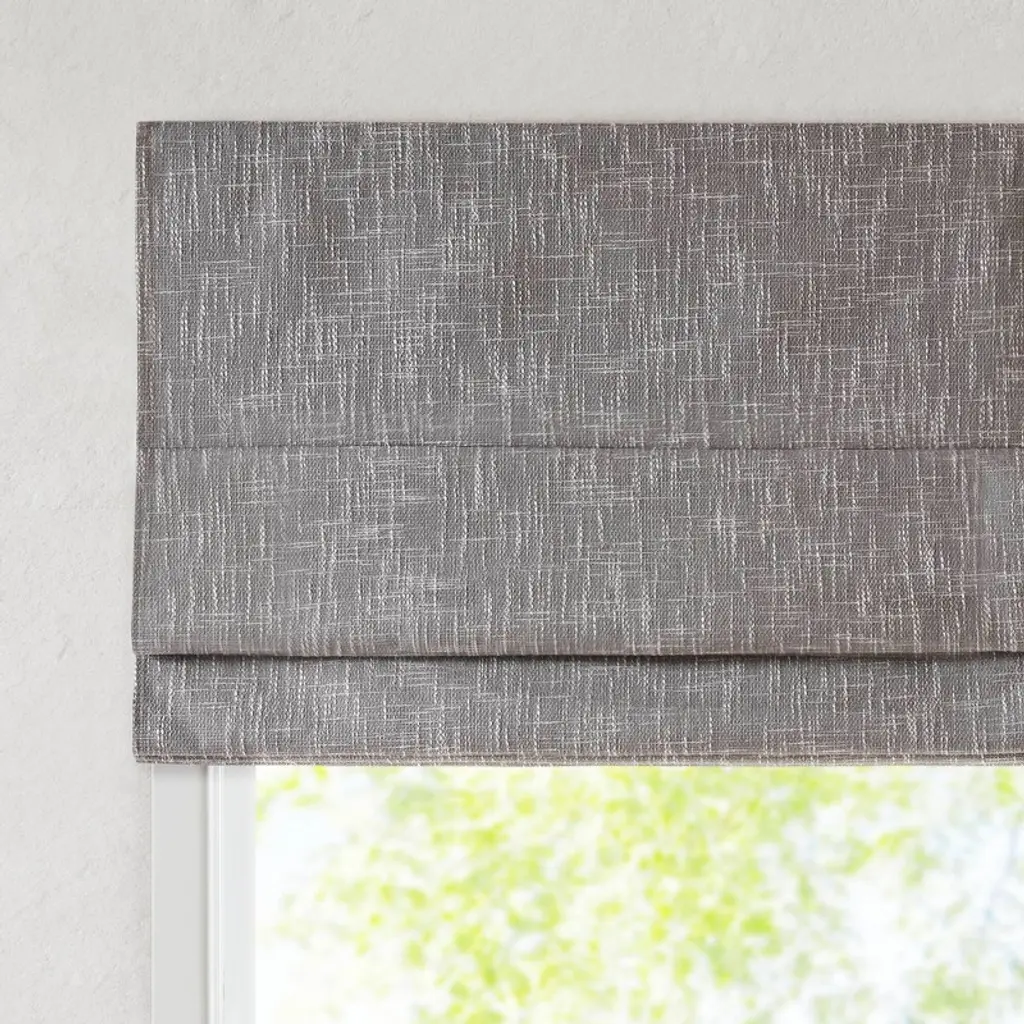 1 Roman Shade: 29inW x 64inL80% Polyester 20% ViscoseThe cordless retraction mechanism makes it easy to open and closeThe Roman shade is true to size with no deductions. Assembly is required with hardwares included
