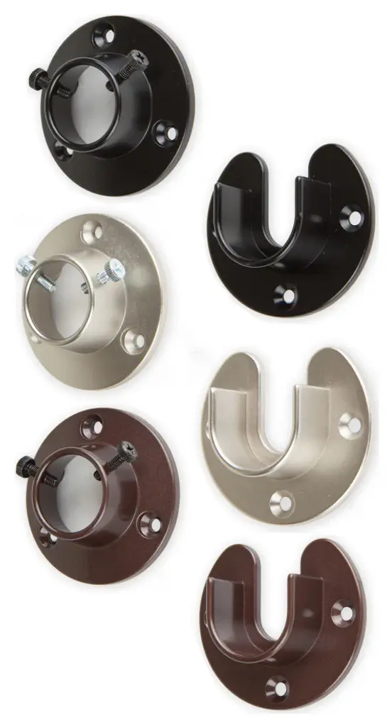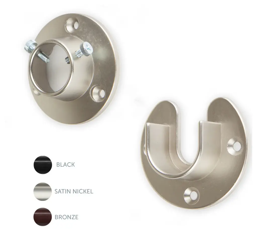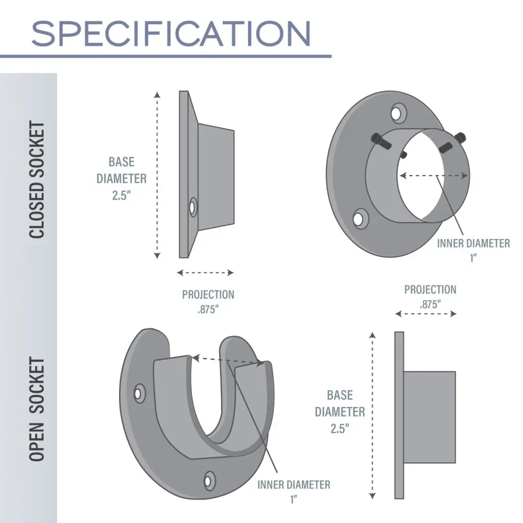Central Design Products presents the perfect enhancement to your window treatment with high end drapery hardware. Easily use these pair of sockets with any rod of 1" diameter. Includes 1 pair of curtain rod sockets (1 open-loop and 1 closed-loop). Measurements: 2.5" x .875" x 2.5" Material: Steel