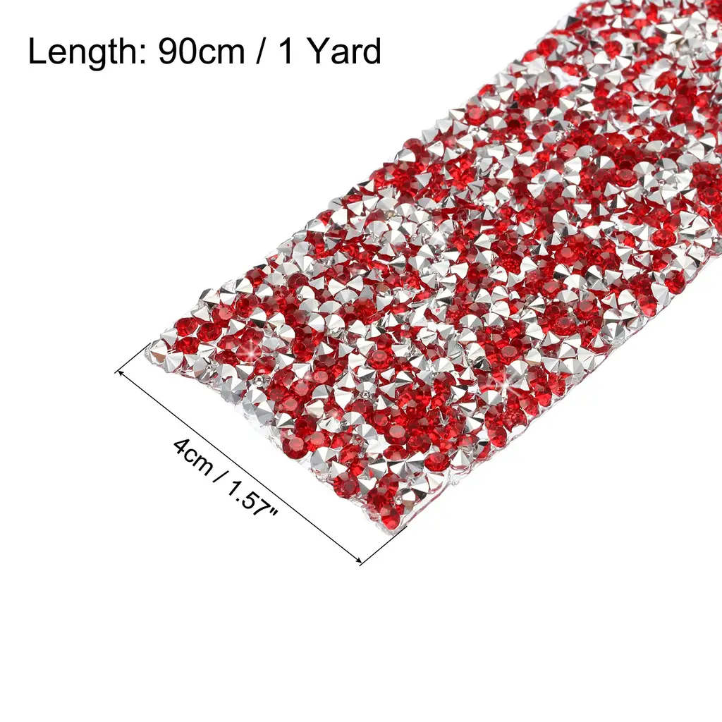 1 Roll 1 Yard Self Adhesive Crystal Diamond Ribbon Silver Base - Red