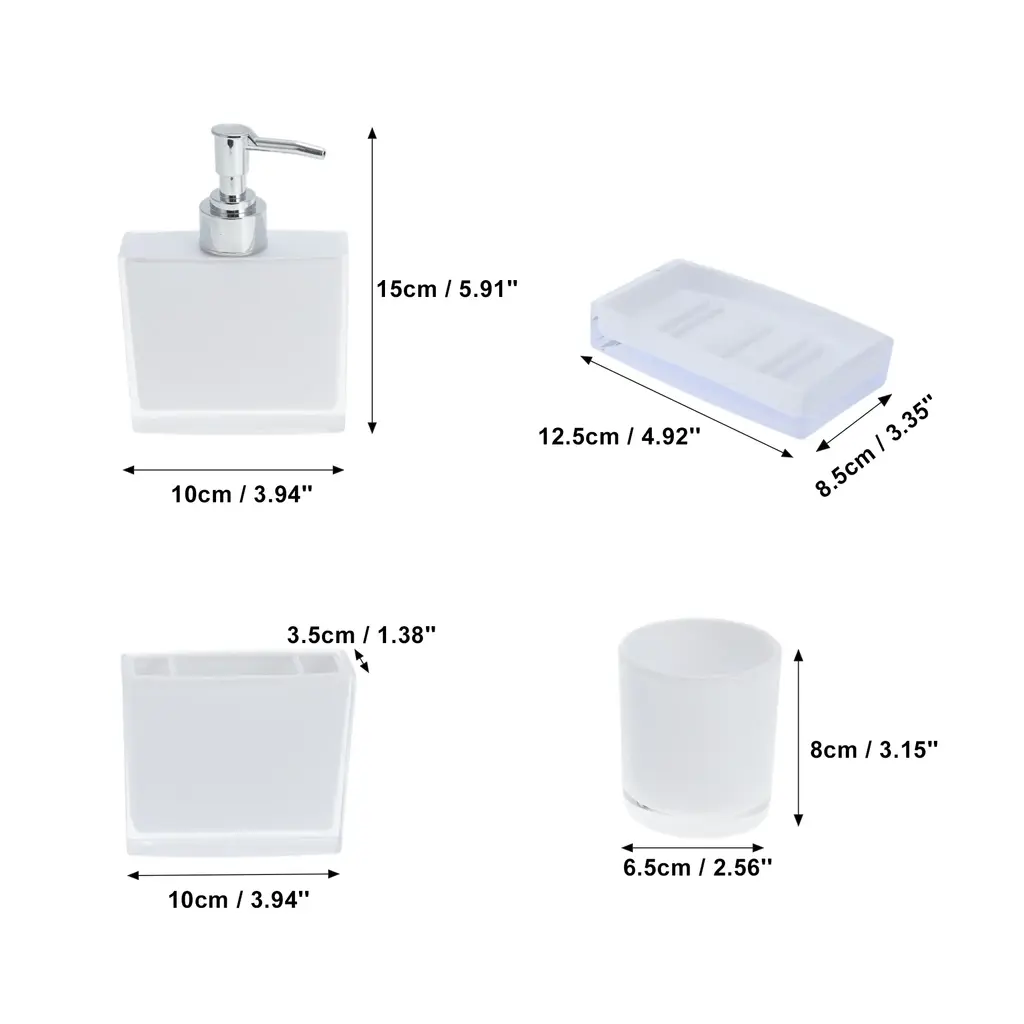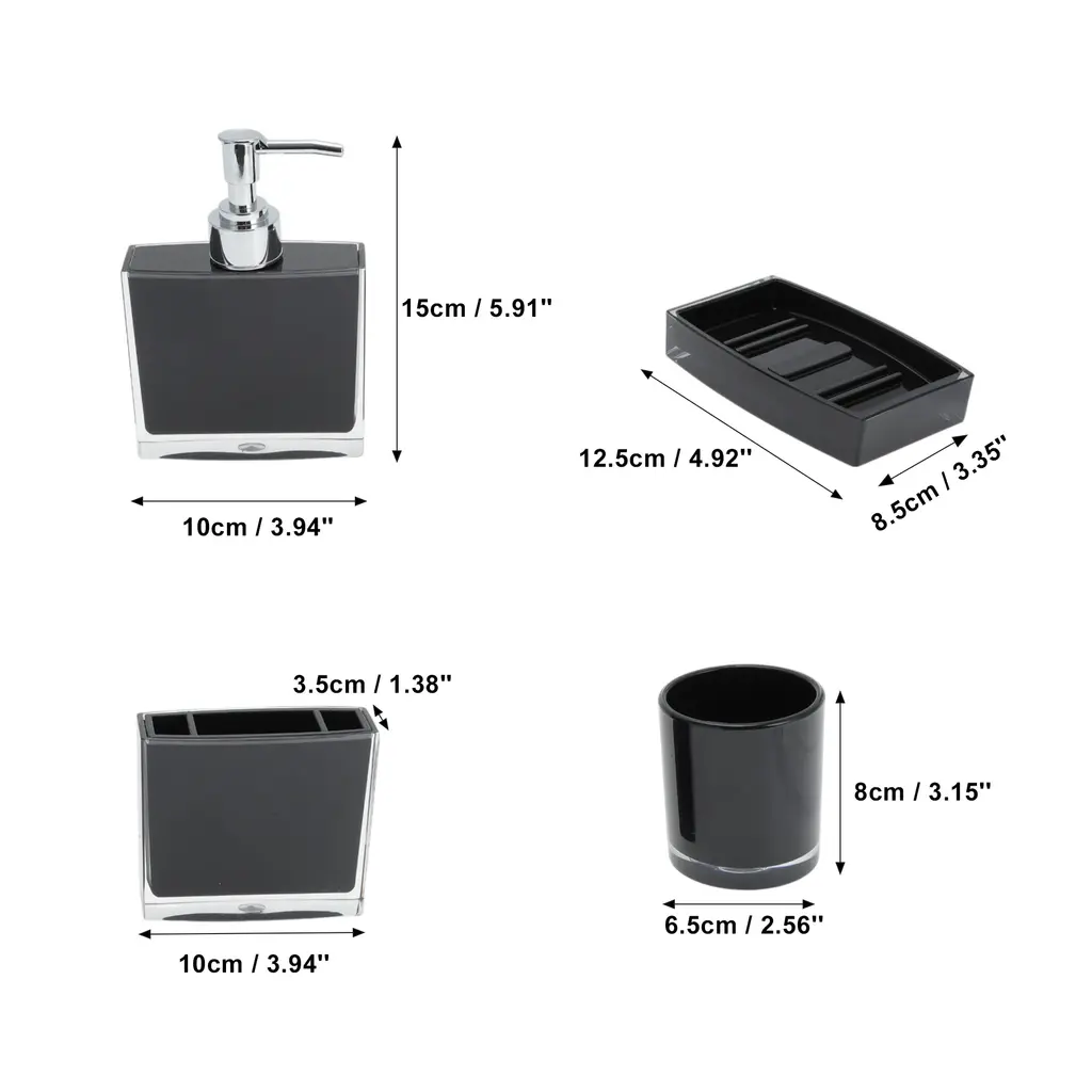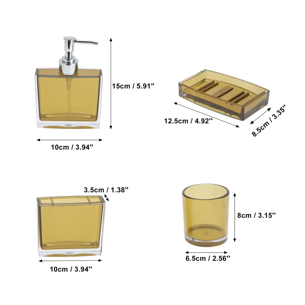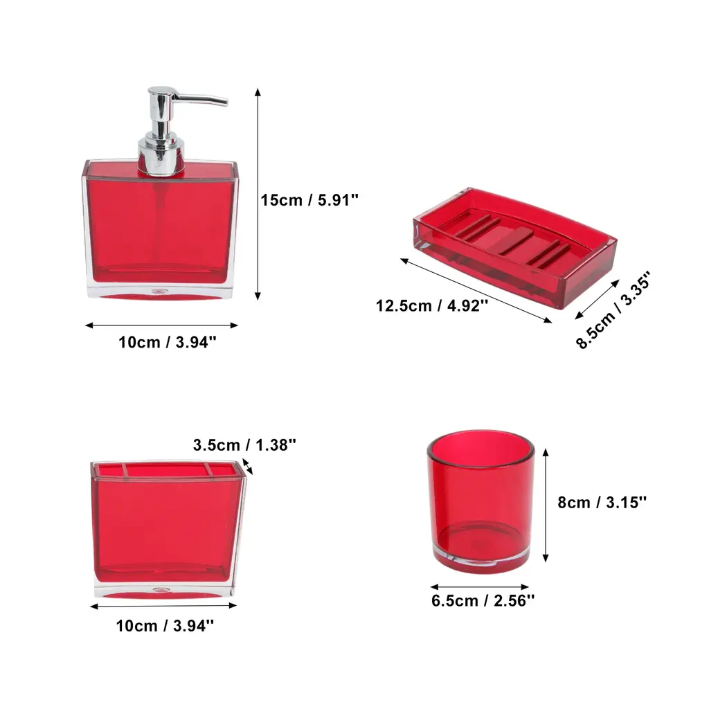 Features:Complete 4 pieces set, includes 1 x toothbrush holder,1 x mouthwash cup,1 x lotion bottle and 1 x soap box.The soap dish and toothbrush holder set easy to clean, wipe it with a soft cloth or just rinse it with water. The smooth surface feel nice to touch, there's no rough edges anywhere.If you are searching for a personalized gift for someone, such as housewarming, Christmas, weddings, birthdays, Mother's Day, Valentine's Day or Thanksgiving, our product is the ideal choice.Please Note: Please allow 1-3mm measuring deviation due to manual measurement.Specifications:Product Name: Bathroom Accessories SetMaterial: PSColor: PurpleToothbrush Holder Size: 10x3.5cm / 3.94''x1.38''(L*W)Mouthwash Cup Size: 8x6.5cm / 3.15''x2.56''(L*W)Lotion Bottle Size: 15x10cm / 5.91''x3.94''(L*W)Soap Box Size: 12.5x8.5cm / 4.92''x3.35''(L*W)Package List:1 Set Bathroom Accessories Set