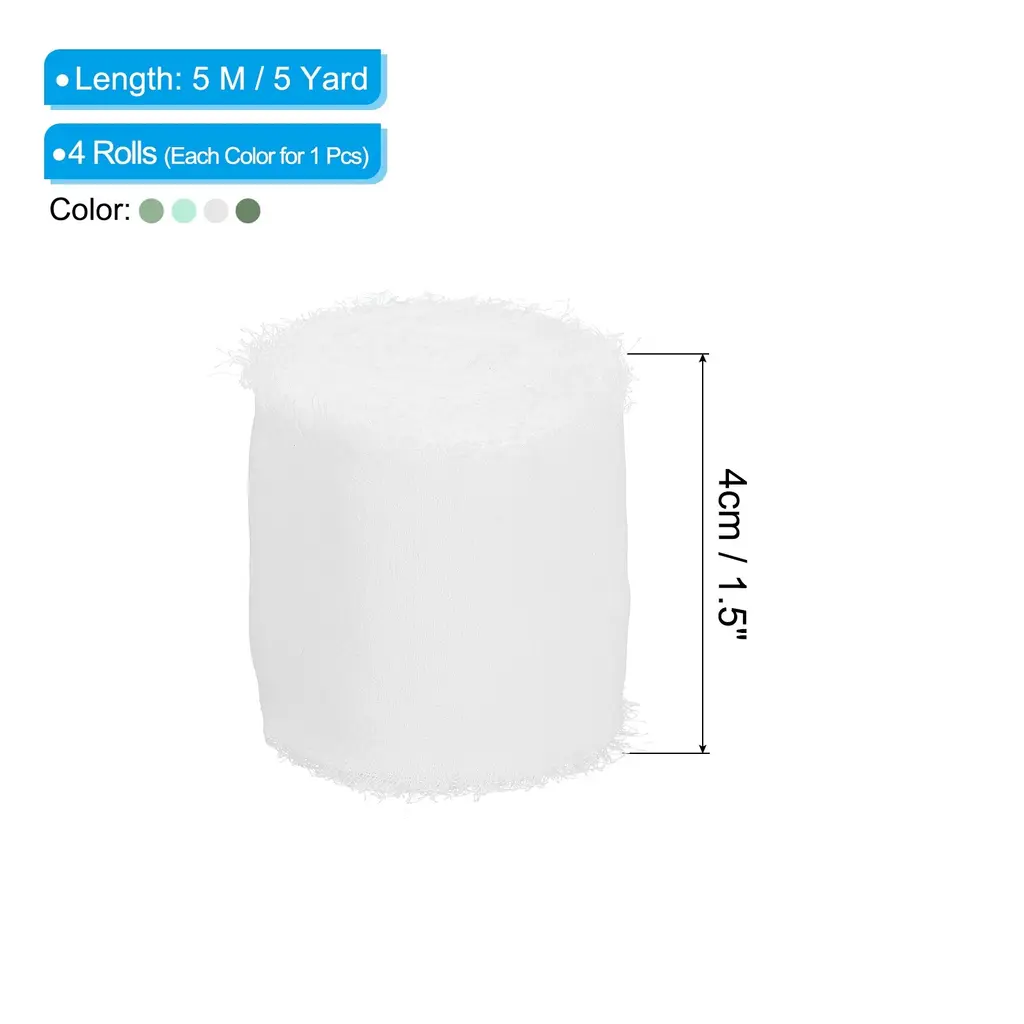 1 Set/4 Rolls 1.5 In X 5 Yard Handmade Fringe Silk Chiffon Ribbon - White,light Green,light Blue,dark Green