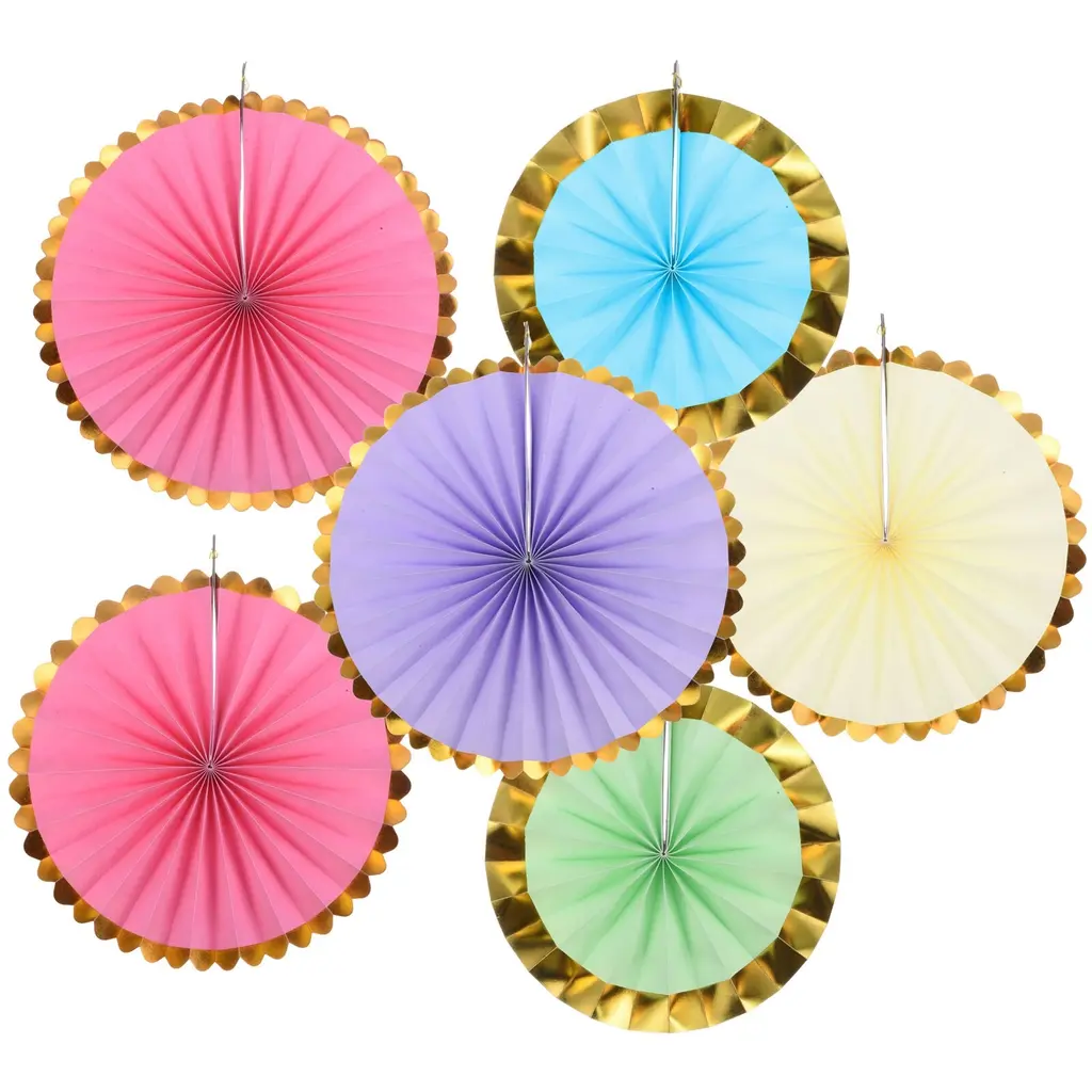 1 Set/6pcs Paper Fans Hanging Backdrop Decoration Round 8"/12"/16", Multicolor - Multicolor