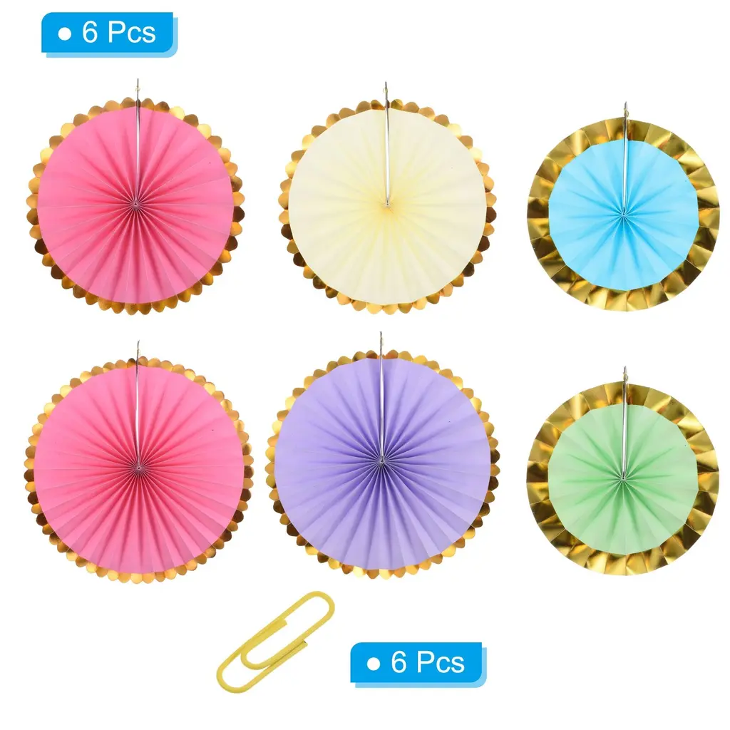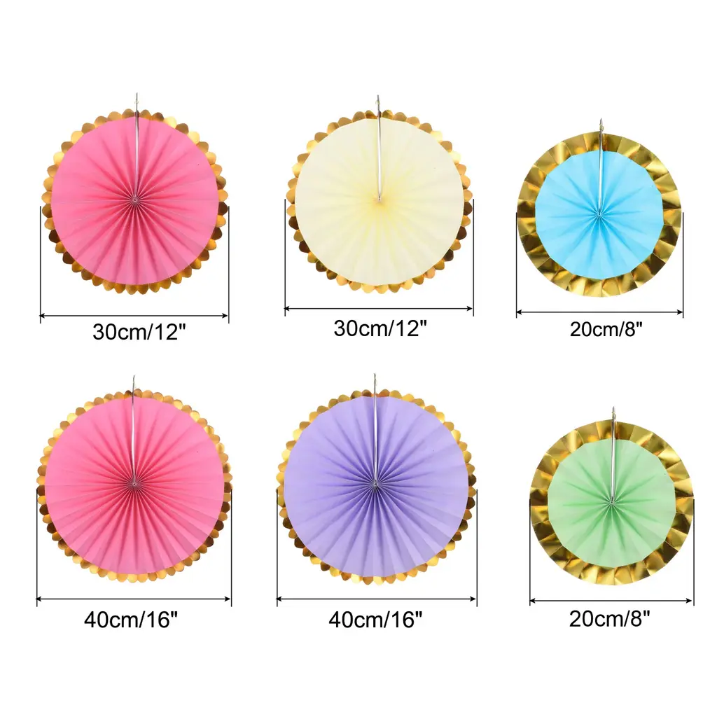 Hanging paper fan is a great addition to any space decor, perfect for weddings, birthday, graduation, festivals, party, bridal shower, special event, Valentine's day, anniversary and other occasions backdrop setting to add a romantic atmosphere.Specification Color: MulticolorMaterial: PaperDiameter: 20cm/8", 30cm/12", 40cm/16"Packing List: 1 Set (6Pcs) x Honeycomb Paper Fans (each size of 2pcs)AdvantageThese round paper fans are made of pleated sturdy paper with bright color and beautiful appearance. They are not easy to tear or lose their shape, not easy to fade and reusable.InstructionUnfold the fan, secure the ends together with pins or adhesive tape, and hang the string on the wall or anywhere you want to decorate.NOTE: Due to the difference in natural light and display resolution, the item color displayed in photos may be showing slightly different from the real object.