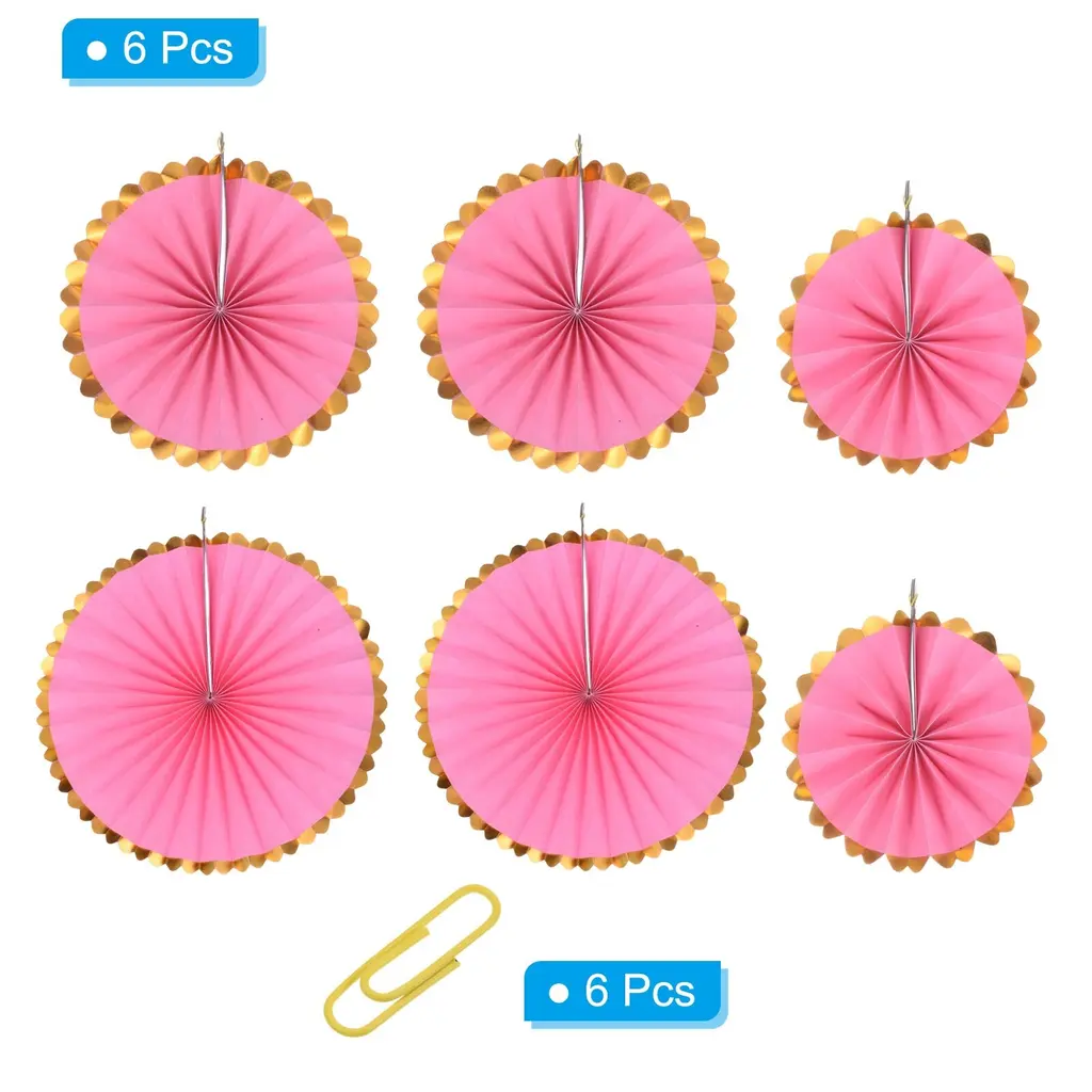 Hanging paper fan is a great addition to any space decor, perfect for weddings, birthday, graduation, festivals, party, bridal shower, special event, Valentine's day, anniversary and other occasions backdrop setting to add a romantic atmosphere.Specification Color: PinkMaterial: PaperDiameter: 20cm/8", 30cm/12", 40cm/16"Packing List: 1 Set (6Pcs) x Honeycomb Paper Fans (each size of 2pcs)AdvantageThese round paper fans are made of pleated sturdy paper with bright color and beautiful appearance. They are not easy to tear or lose their shape, not easy to fade and reusable.InstructionUnfold the fan, secure the ends together with pins or adhesive tape, and hang the string on the wall or anywhere you want to decorate.NOTE: Due to the difference in natural light and display resolution, the item color displayed in photos may be showing slightly different from the real object.