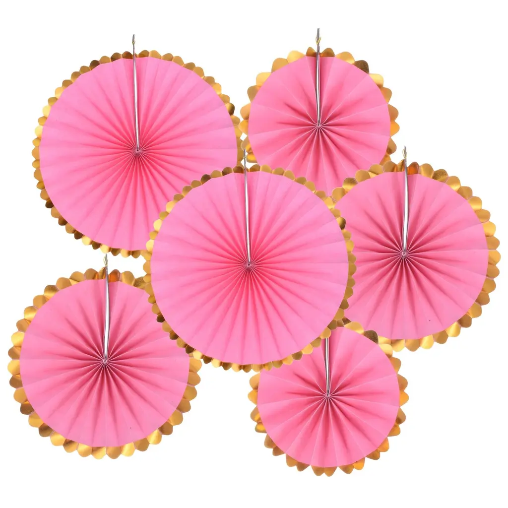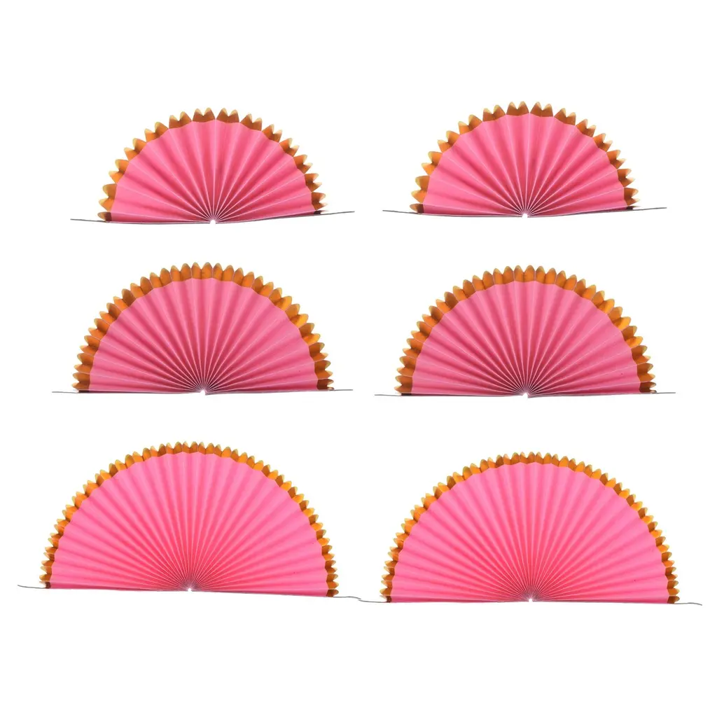 1 Set/6pcs Paper Fans Hanging Backdrop Decoration Round 8"/12"/16", Pink - Pink