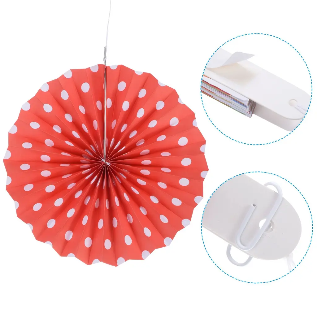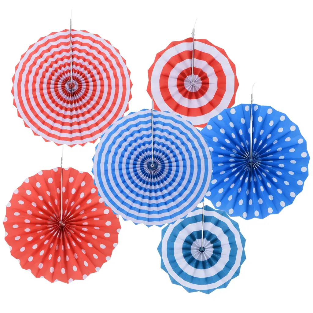 1 Set/6pcs Paper Fans Hanging Decoration Round 8"/12"/16", Red Blue - Red Blue - Red Blue