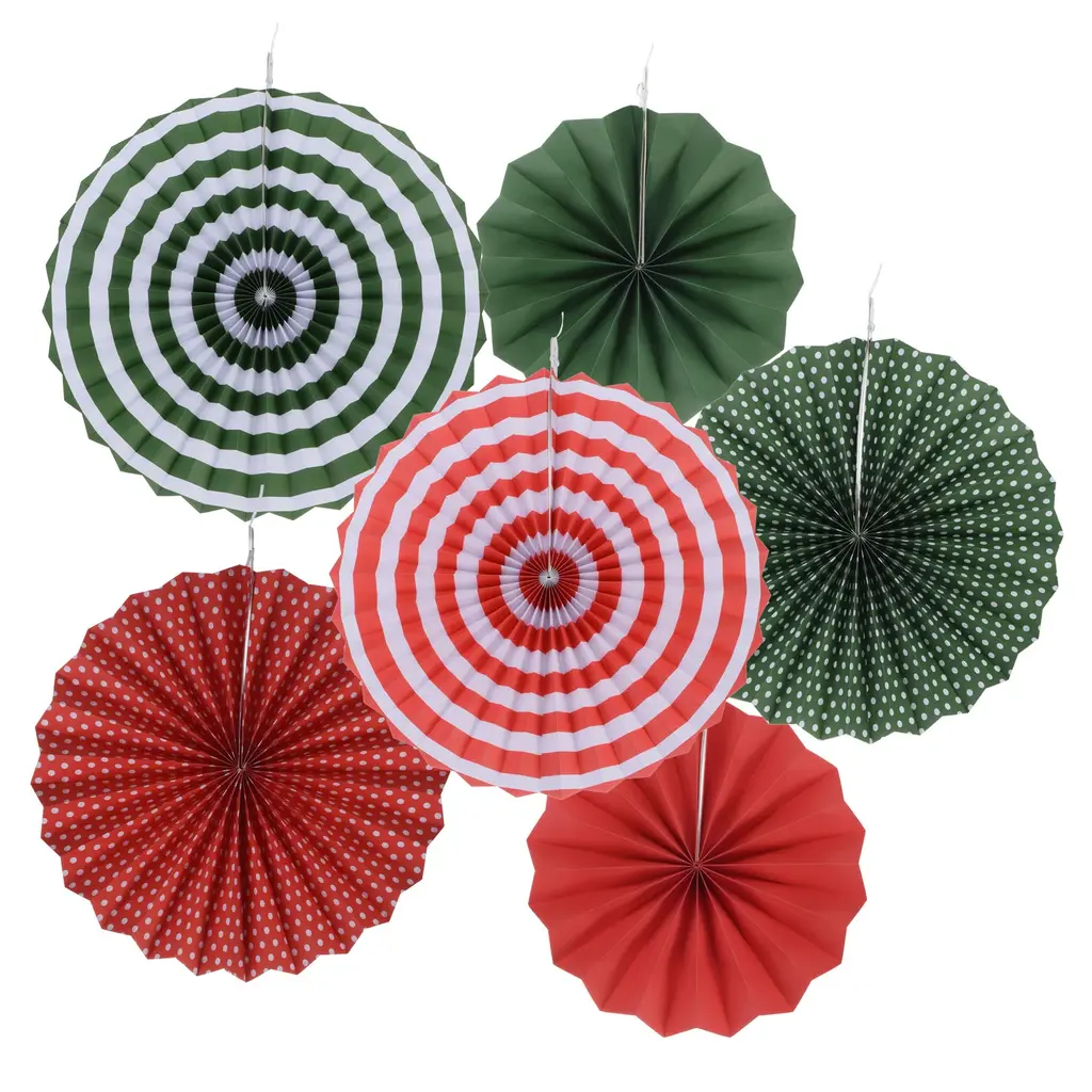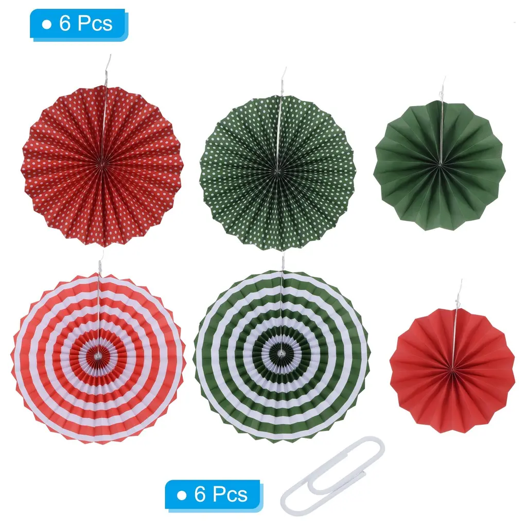 1 Set/6pcs Paper Fans Hanging Decoration Round 8"/12"/16", Red Green - Red Green - Red Green