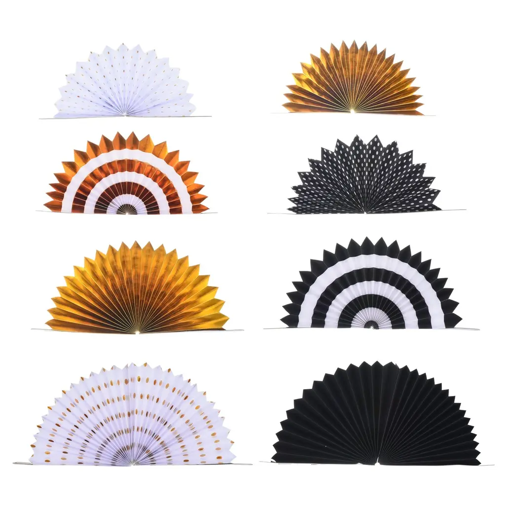 1 Set/8pcs Paper Fans Hanging Decoration Round 8"/10"/12"/16" Black Golden - Black Golden - Black Golden