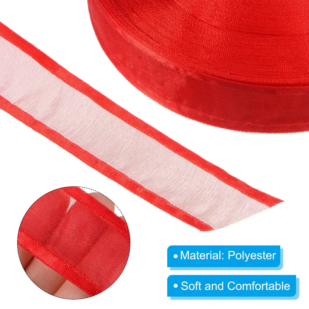 Chiffon ribbon is good for decorating your craft items, like tying a bow on it or wrapping items, widely used in art crafts, wine bottle decoration, package decoration, flower arrangement, DIY cloth sewing, and so on.SpecificationColor: RedMaterial: PolyesterSize: 25mm x 45.72m / 1 Inch x 50 YardPacking List: 1 x Chiffon RibbonAdvantageThe ribbon roll is made of polyester material, with a good appearance. It is also soft and comfortable to touch.Besides, it can be cut into the length and shape you want with scissors.Packed in a roll shape is more convenient to store and carry.Instruction1. Easy to use, cut it in the shape you want.2. Then you can tie a bow or wrap your craft items.Note: Please check the size you need before purchasing.