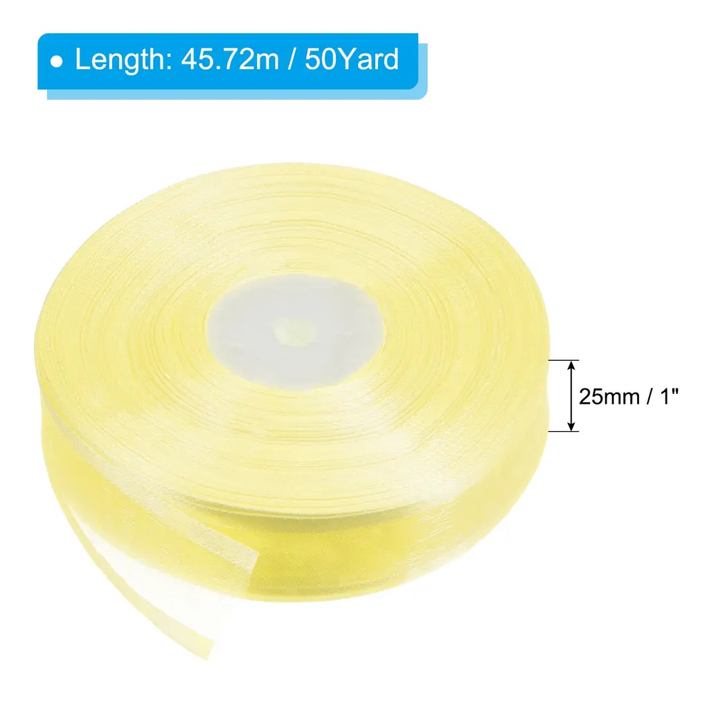 1" Wide 50 Yards Chiffon Organza Ribbon Wrapping Satin Crafts Roll - Yellow