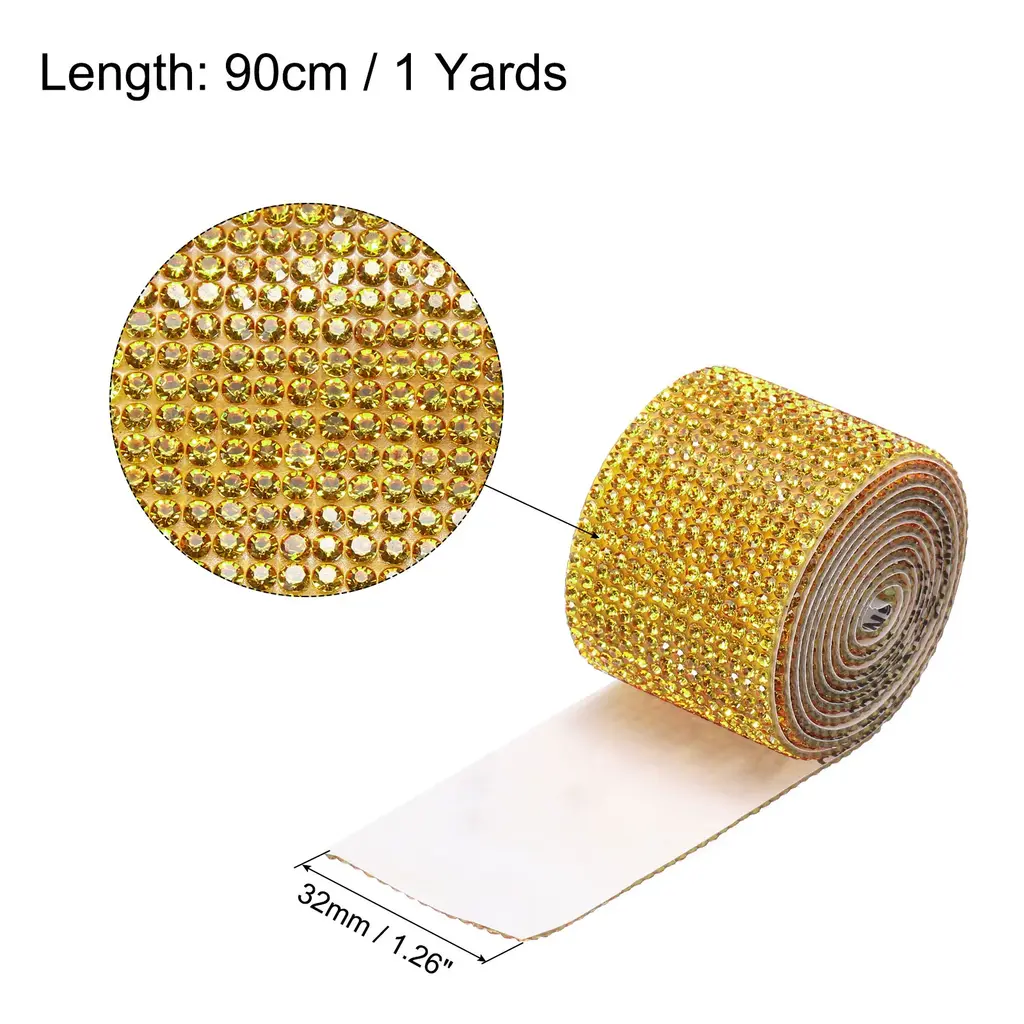 Add a touch of sparkle and elegance to your decorations with our 1 Yard 32mm Self Adhesive Crystal Ribbon. Made of high-quality resin, this ribbon features a stunning shine that will catch the light and add a glamorous touch to any occasion. Whether you're decorating furniture, cakes, or handicrafts, or adding a special touch to weddings, birthday parties, or holidays, this crystal ribbon is the perfect choice. With its double-sided tape, it's easy to cut and customize the size you need. Simply peel off the backing and stick it directly onto the surface. The adhesive performance is stable, ensuring that your decorations stay in place. Get creative and transform your items with this beautiful crystal ribbon.Features:What's Included: