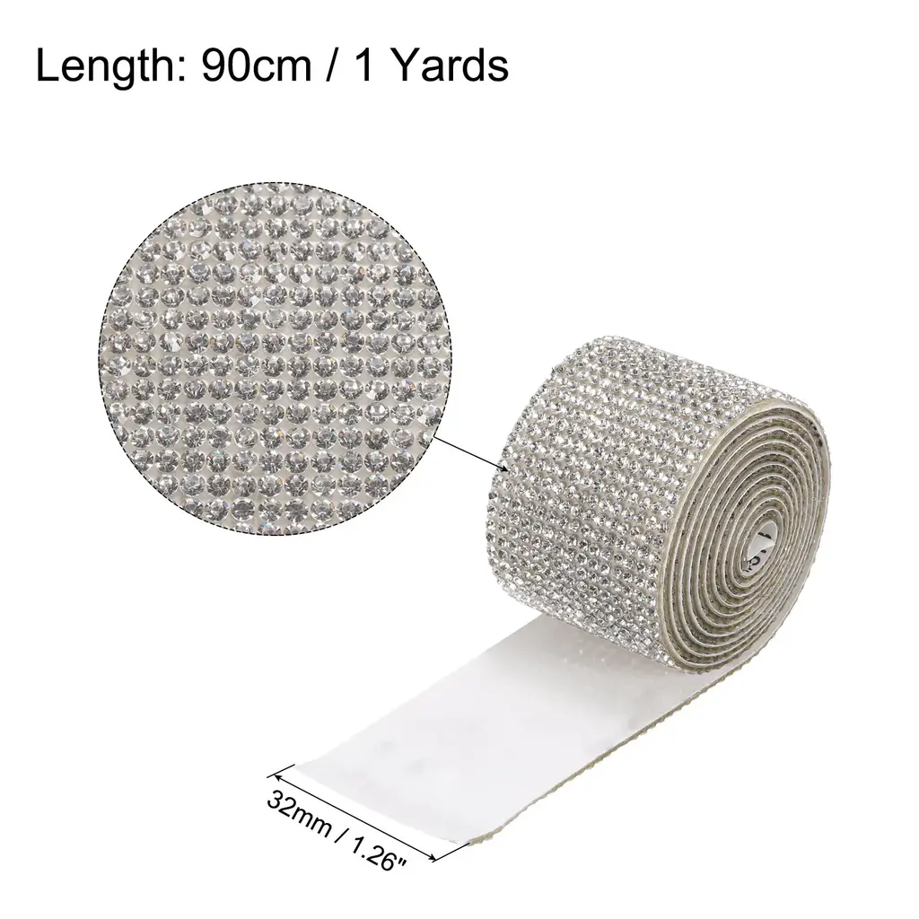 Add a touch of sparkle and elegance to your decorations with our 1 Yard 32mm Self Adhesive Crystal Ribbon. Made of high-quality resin, this ribbon features a stunning shine that will catch the light and add a glamorous touch to any occasion. Whether you're decorating furniture, cakes, or handicrafts, or adding a special touch to weddings, birthday parties, or holidays, this crystal ribbon is the perfect choice. With its double-sided tape, it's easy to cut and customize the size you need. Simply peel off the backing and stick it directly onto the surface. The adhesive performance is stable, ensuring that your decorations stay in place. Get creative and transform your items with this beautiful crystal ribbon.Features:What's Included: