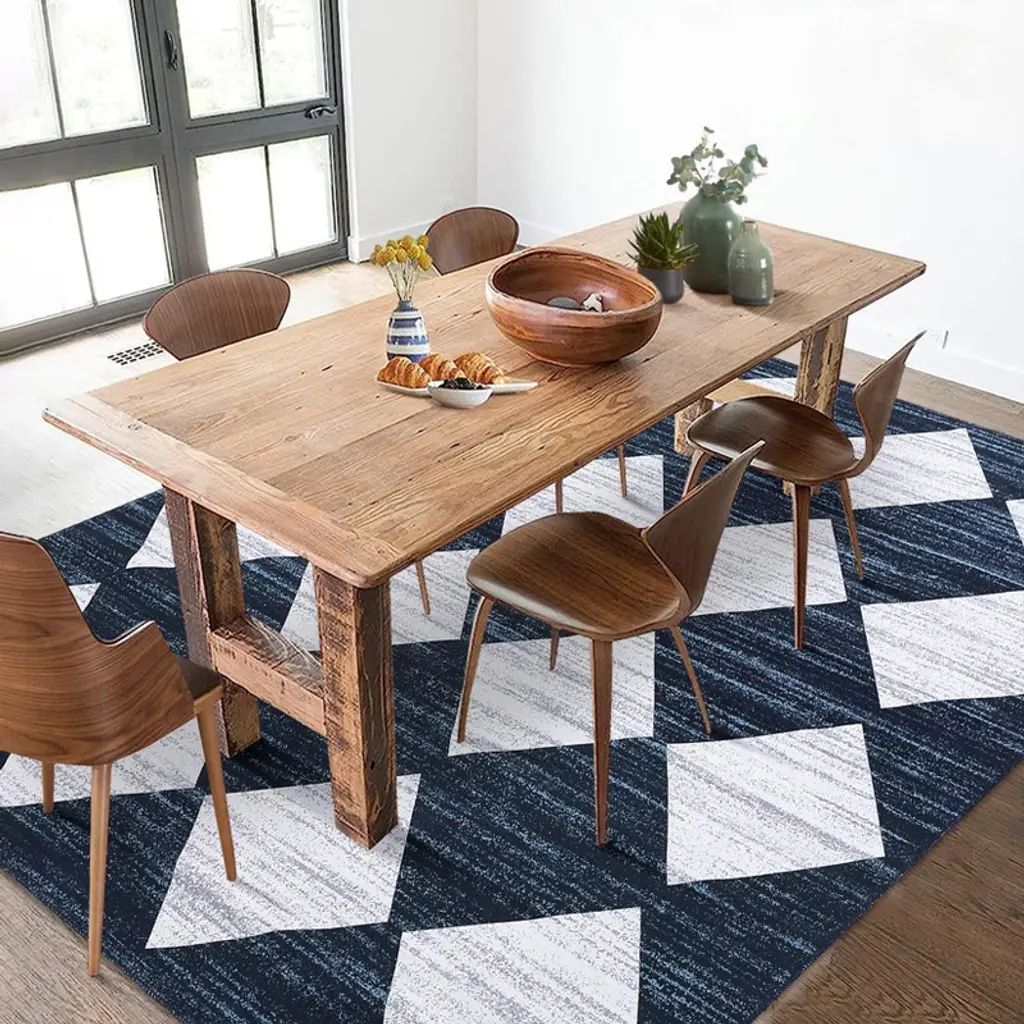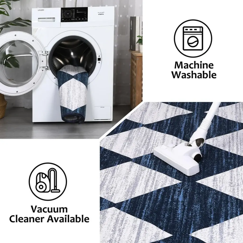 10 13 Ft Polyester Dark Blue Rectangular Hallway Bathroom Entryway Kitchen Office Foldable Grid Modern Washable Area Rug