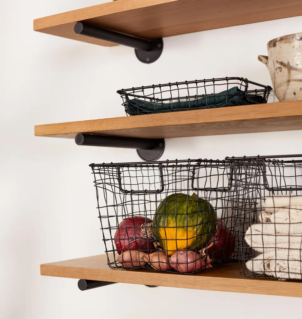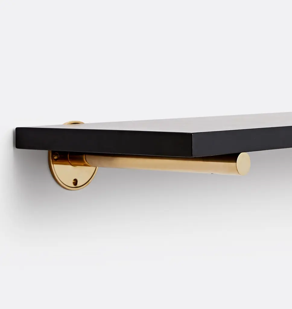 Featuring a streamlined design with lots of industrial influence, these handsome brass brackets make a perfect pairing with our new and salvaged shelving. Details You'll Appreciate Simple industrial style Combine brackets with your shelf of choice for a custom combination Choose from several shelving widths to suit your space Product Specifications Solid brass brackets Includes two brackets and your choice of shelf Mounting hardware included Imported