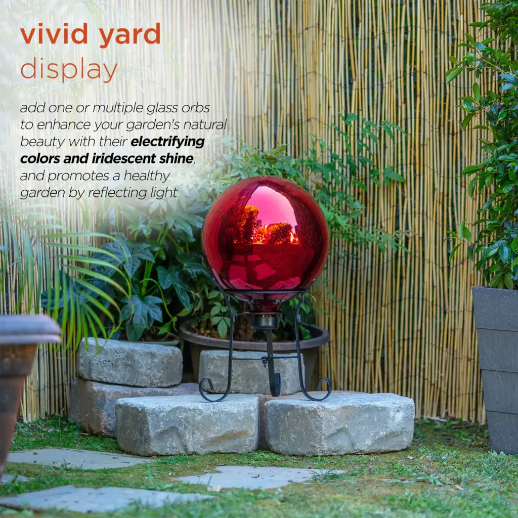 Add beautiful, bright color to your yard with the 10" Diameter Indoor/Outdoor Glass Gazing Globe Yard Decoration from Alpine. Made from brightly colored glass, this spherical yard art décor provides a unique and decorative addition to your home''s interior or exterior décor with its vivid red design. The multi-use glass gazing ball can be used in a variety of ways, including in your garden, patio, courtyard, or front door entryway or as an accent piece in your living room. Add one or multiple glass orbs to enhance your formal or informal garden''s natural beauty with their lovely colors and iridescent shine. An attached rubber neck allows you to display the stunning sphere on a stand. Use a metal stand (sold separately) in varying heights to help create visual interest and depth to your soon-to-be award-winning lawn. This colored glass gazing ball will add vibrant color and shine to your garden, and will help promote a healthy yard by reflecting light on sunny days. This colorful glass gazing sphere measures 10" Diameter to fit almost any outdoor or indoor area and includes a one-year manufacturer''s warranty from date of purchase. Alpine Corporation is one of America''s leading designers, importers, and distributors of superior quality home and garden decor products. Alpine''s award winning in-house design team continuously develops new and innovative "statement pieces" for your home and garden. Your outdoor living spaces will be the envy of the neighborhood with our wide assortment of fresh, fashionable and contemporary products, from beautifully crafted solar garden stakes featuring patented motion and fiber optic lighting technology to gorgeous glass and glow-in-the-dark birdbaths and feeders.