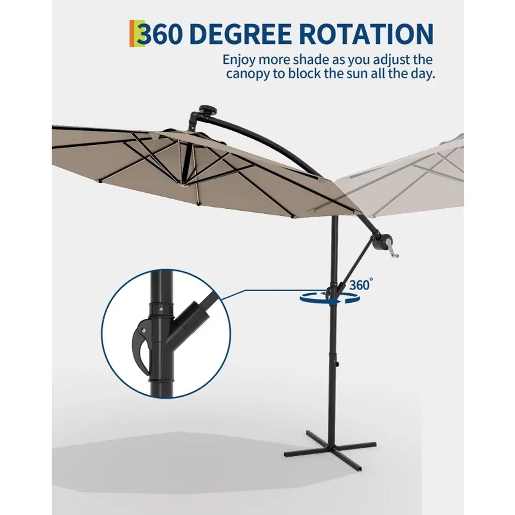 Elevate your outdoor comfort with this 10-foot cantilever umbrella, engineered for ultimate versatility and durability. Designed to provide expansive shade without a center pole obstruction, its 360° rotation and easy tilt adjustment let you direct coverage exactly where needed—perfect for lounging, dining, or poolside relaxation.