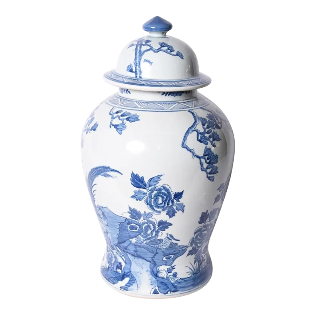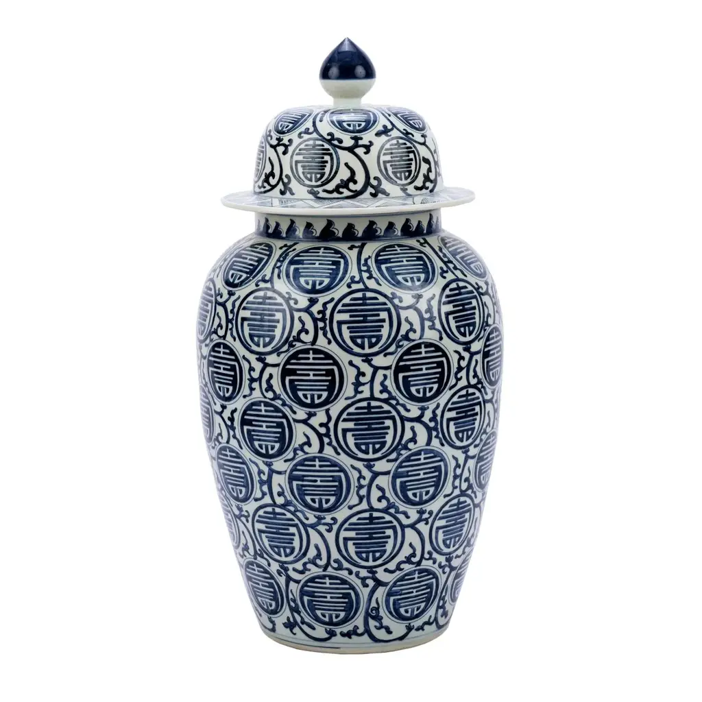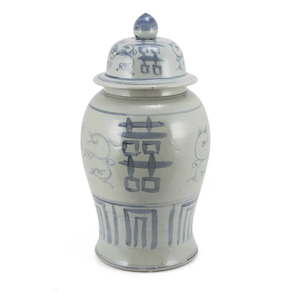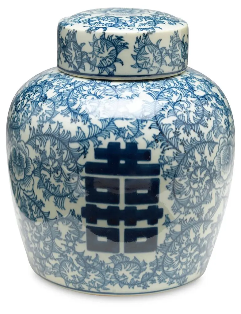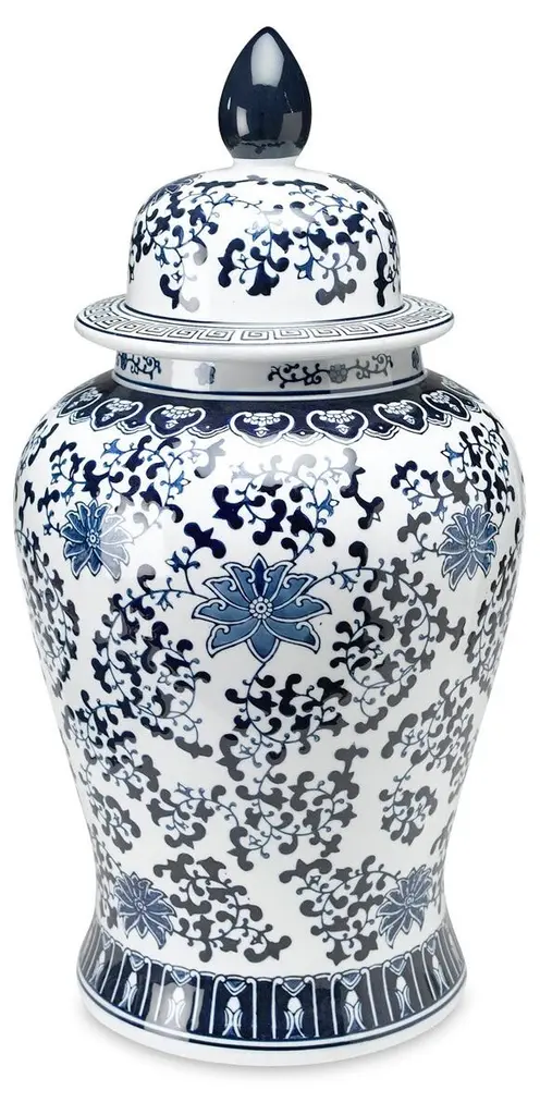 With a classic blue pattern and light-green glaze, this porcelain jar will bring a stylish sophistication to your space. Mix and match for a bolder look.