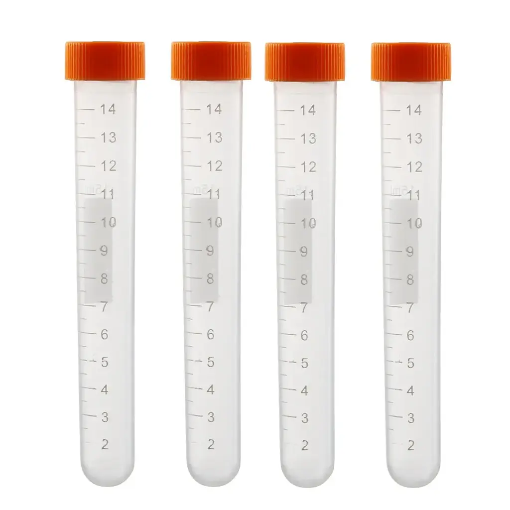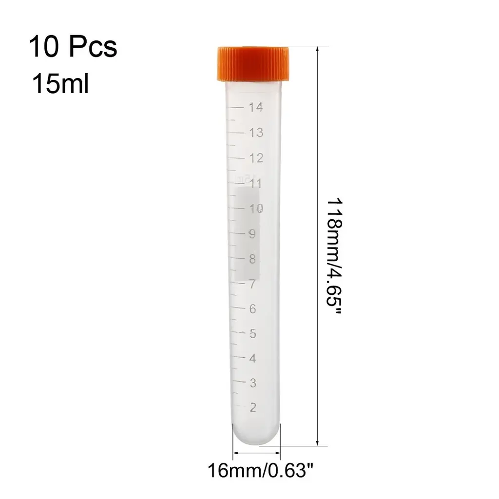 10 Pcs 15ml Plastic Centrifuge Tubes With Screw Cap Round Bottom Graduated Marks - Clear - Clear