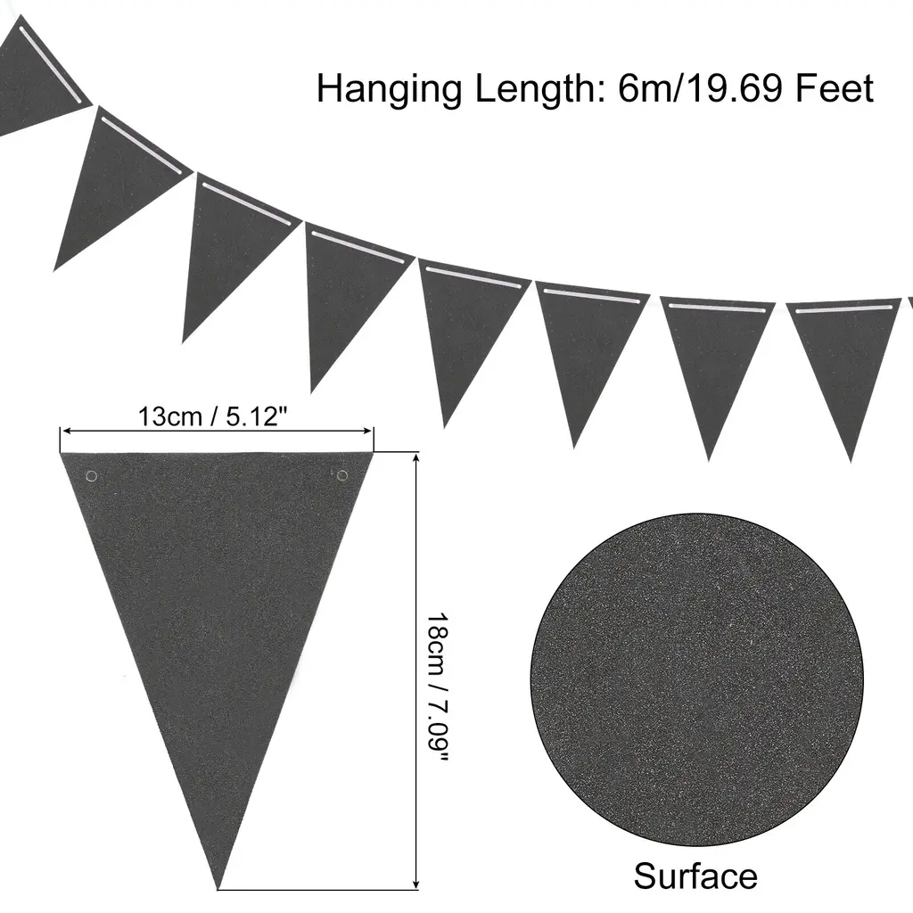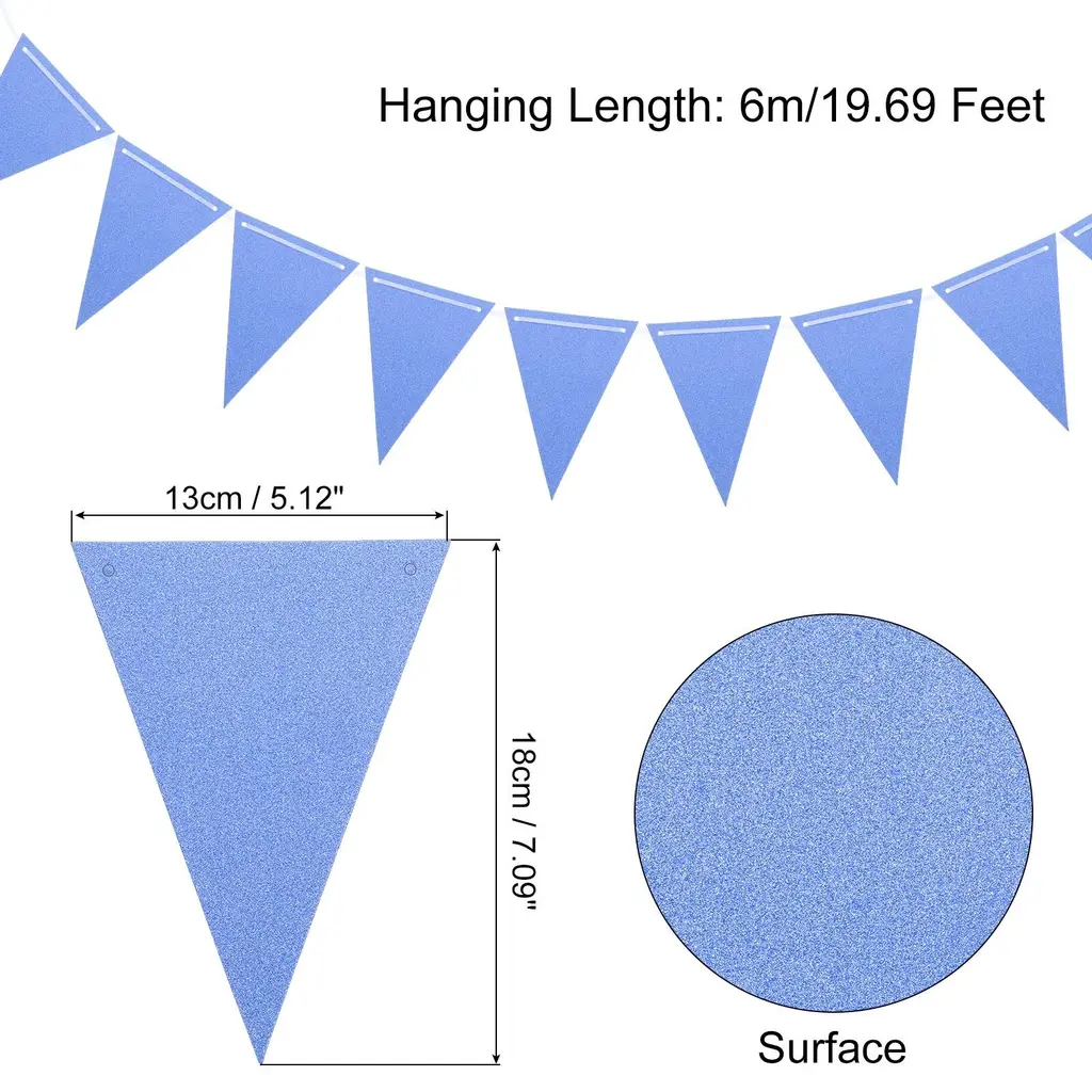 What is this?This pennant banner is mainly used for party decoration, you can hang or stick these decorative ribbons on the wall, window, door or shelf to add a different atmosphere to your party, mainly used for birthdays, weddings, Christmas, Easter, masquerade, graduation party and other partiesWhat will I get?Material: PaperColor: Dark PurpleFlag Quantity:15Hanging Length: 6m/19.69 FeetTriangle size:13*18cm / 5.12 x 7.09 inch(W*L)Package content:10 Pcs x Triangle HangingIs there any advantage of the product?1. This pennant banner flag is made of paper, not easy to bend and break, and can be repeated. After the party is over,just take it off and fold it back.2. Pennant banner flags string has solid color, you can DIY draw any pattern you want on the banner, adding a variety of decorations to your party.3. These triangle bunting flags are very easy to use, strong rope, so that you will not fall off easily even if you hang it outdoors, you can hang it on any decorative place you wantHow to use it?Unfold the triangle bunting flags , and then tie the ropes at both ends to a fixed positionWhat should I notice?Tips: please confirm the length before you buy.