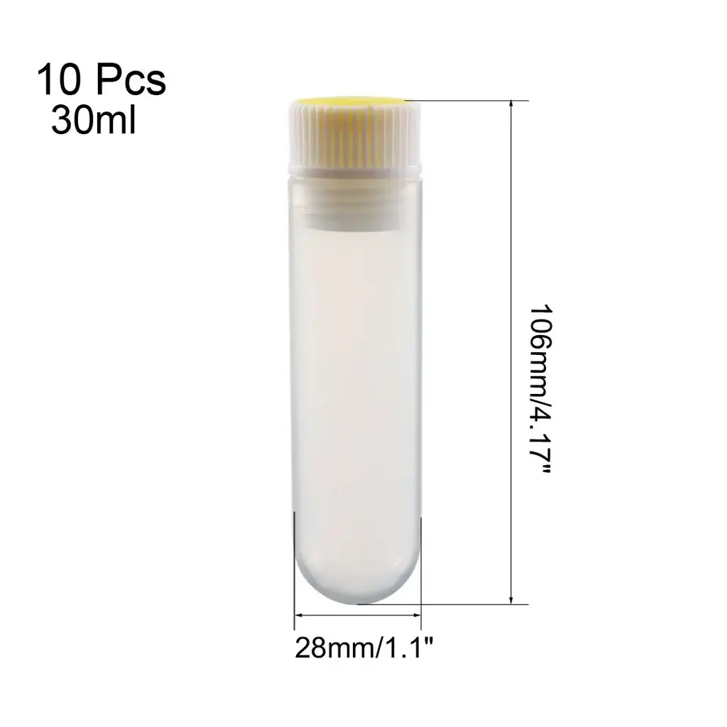 10 Pcs 30ml Plastic Centrifuge Tubes With Yellow Screw Cap Round Bottom - Clear - Clear
