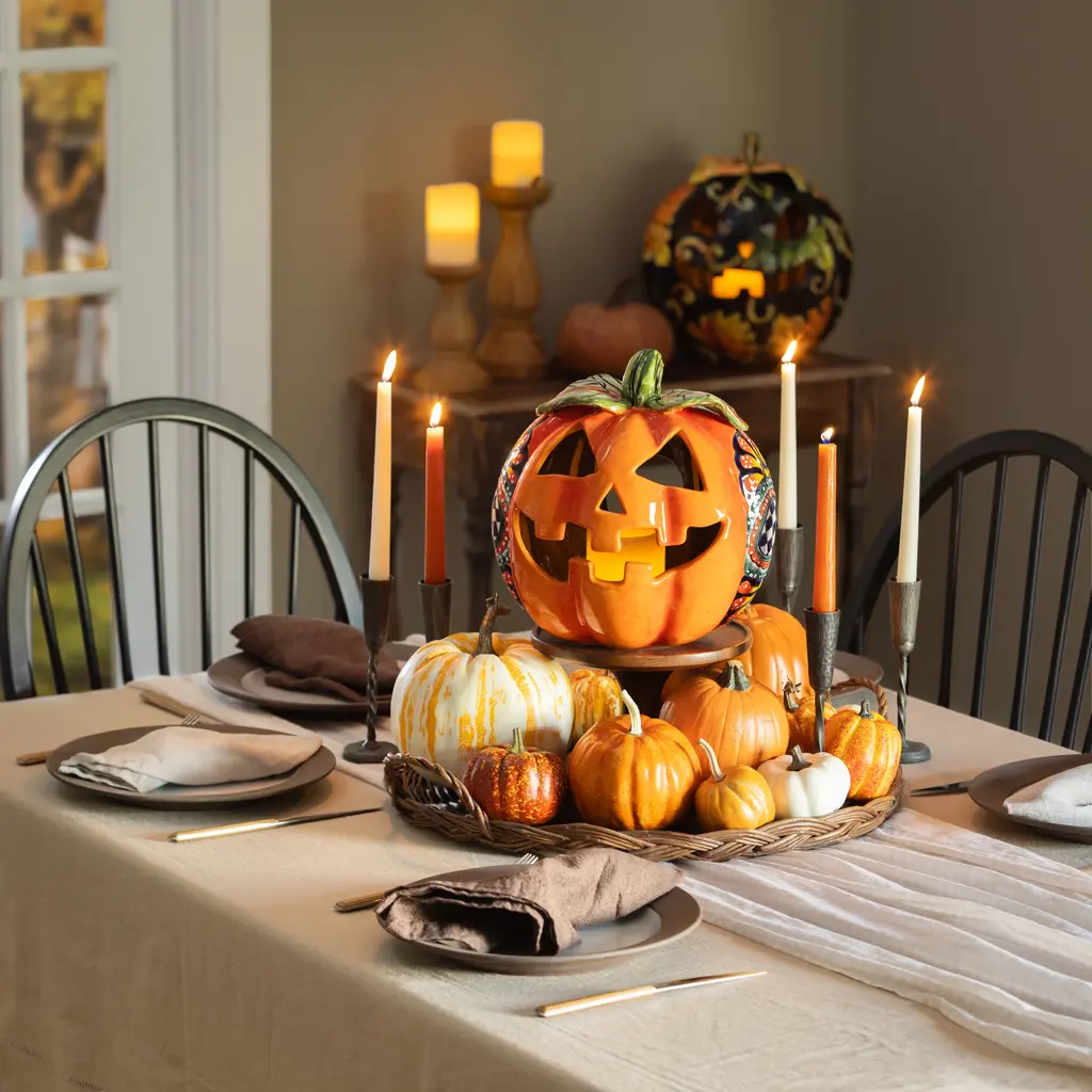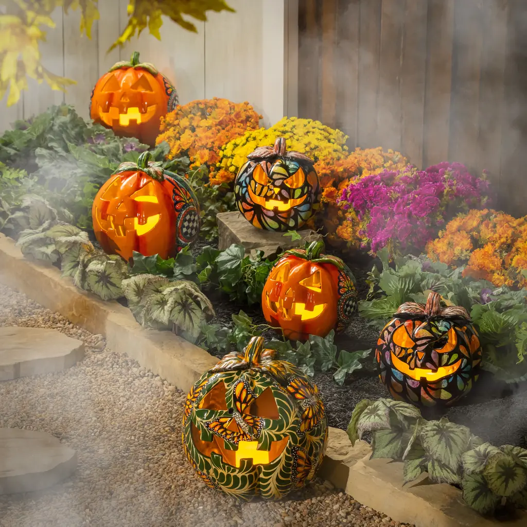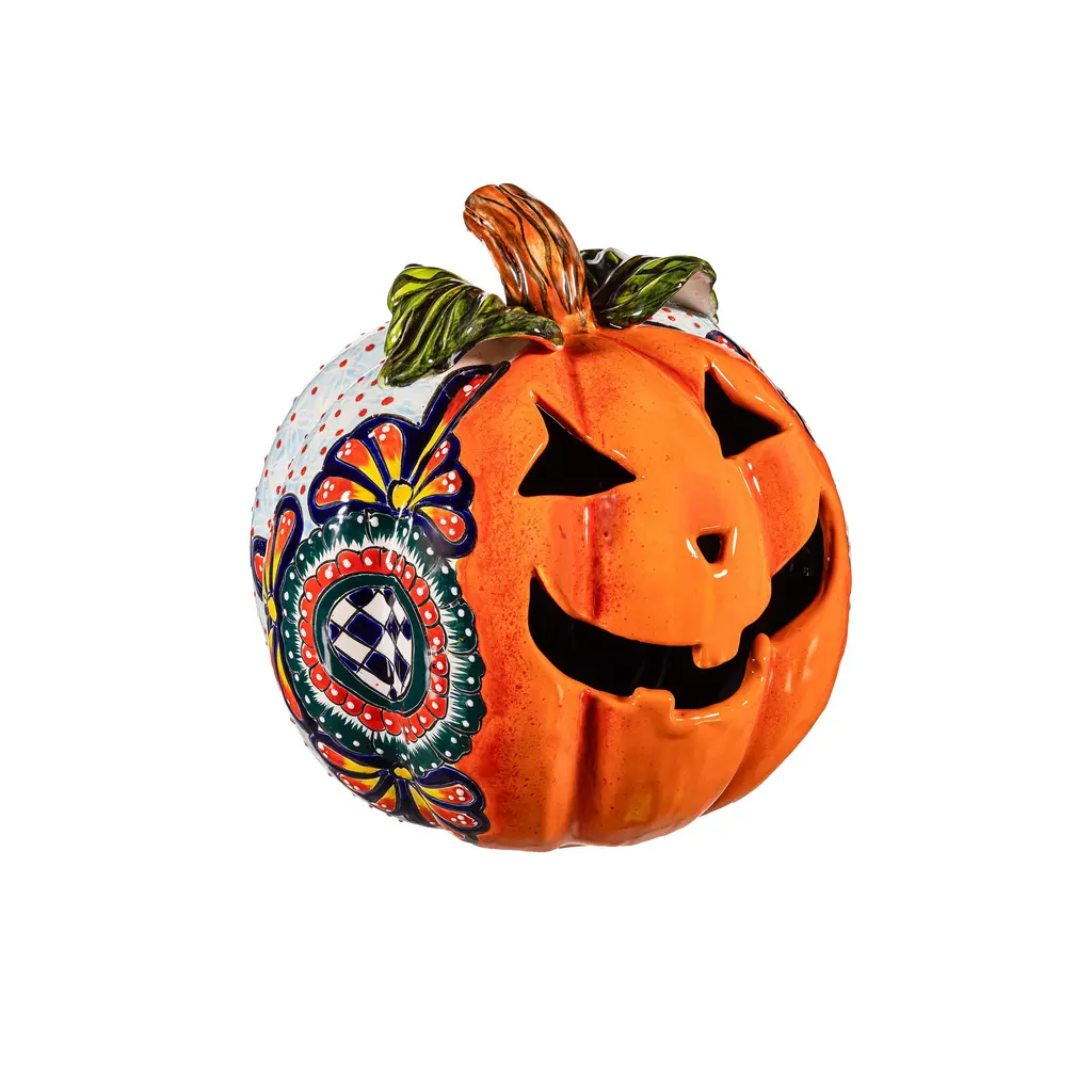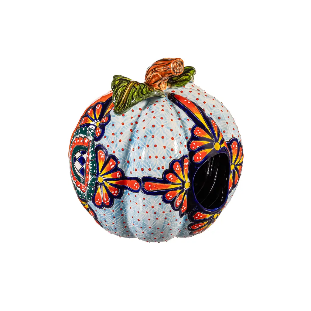 Bring quality craftsmanship to your home with this Talavera pumpkin, handmade by skilled artisans in Mexico. This accent piece is uniquely designed to add vibrance to any decor. The glaze coating is applied by hand and seals in the intricate artistry and gives the pumpkin a wonderful shine, making it safe for display indoors or out. Feature this piece in your living room, entryway, porch, deck and more. The hand-painted colors perfectly complement greenery, florals or neutral spaces in need of a colorful upgrade.