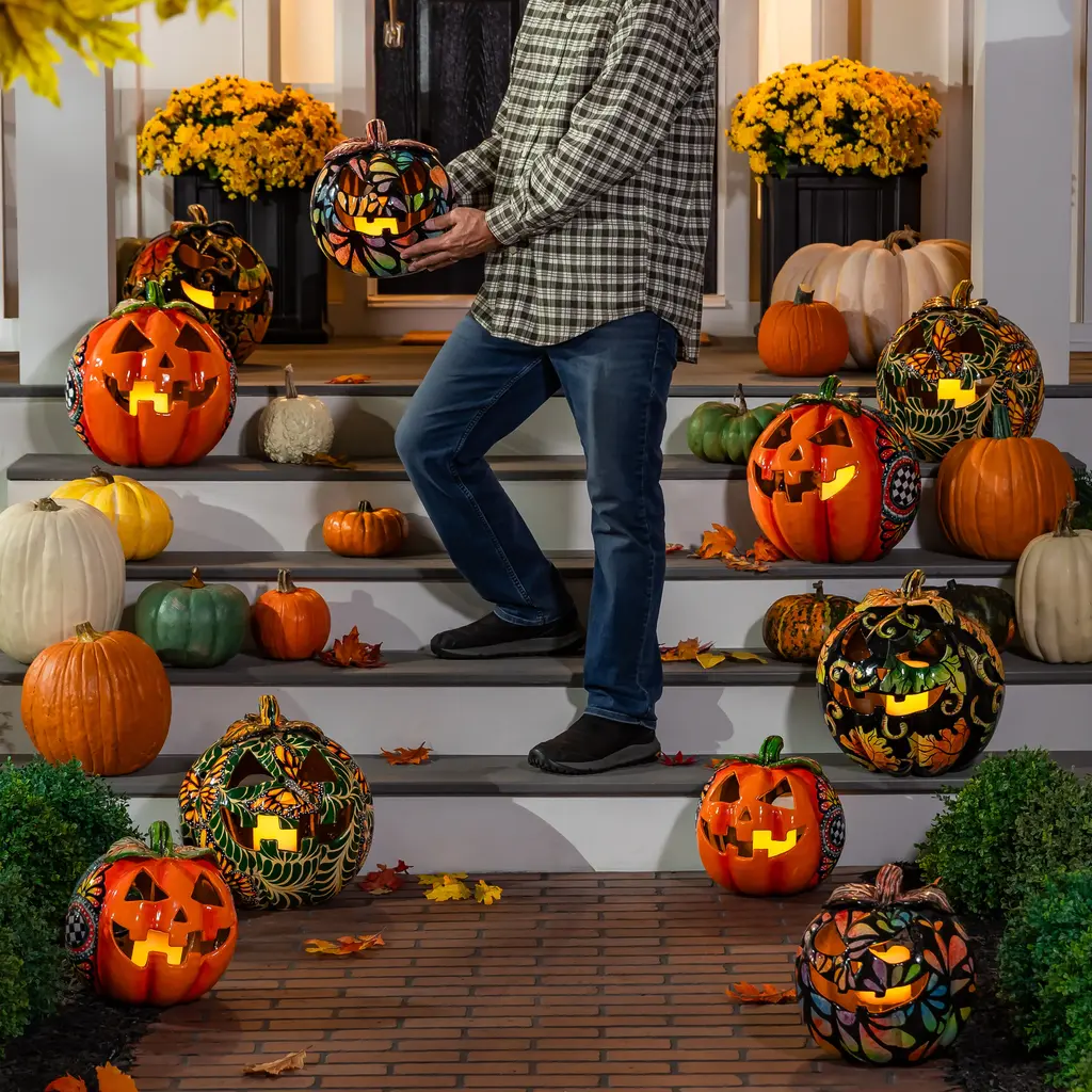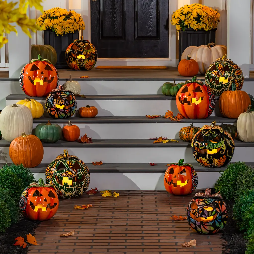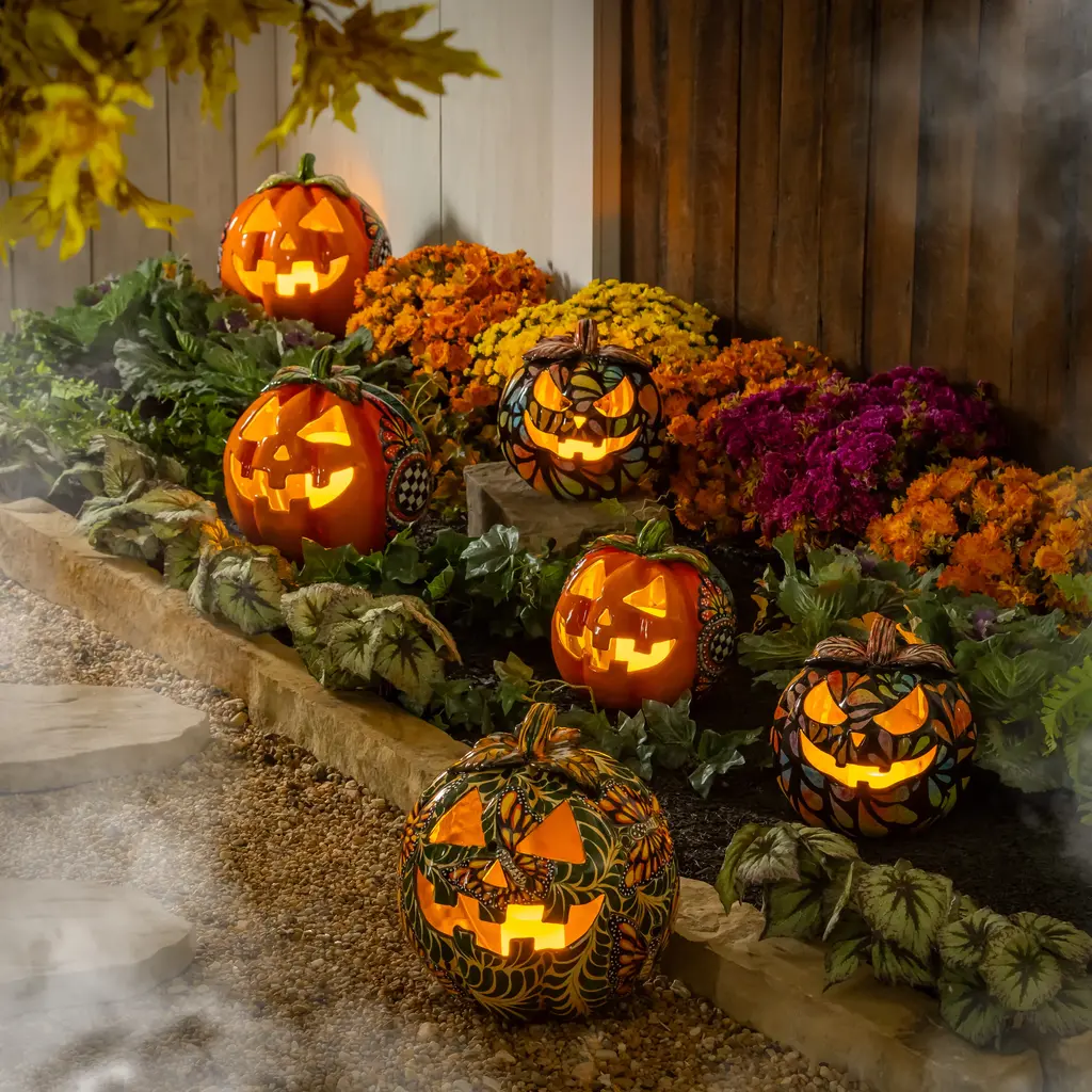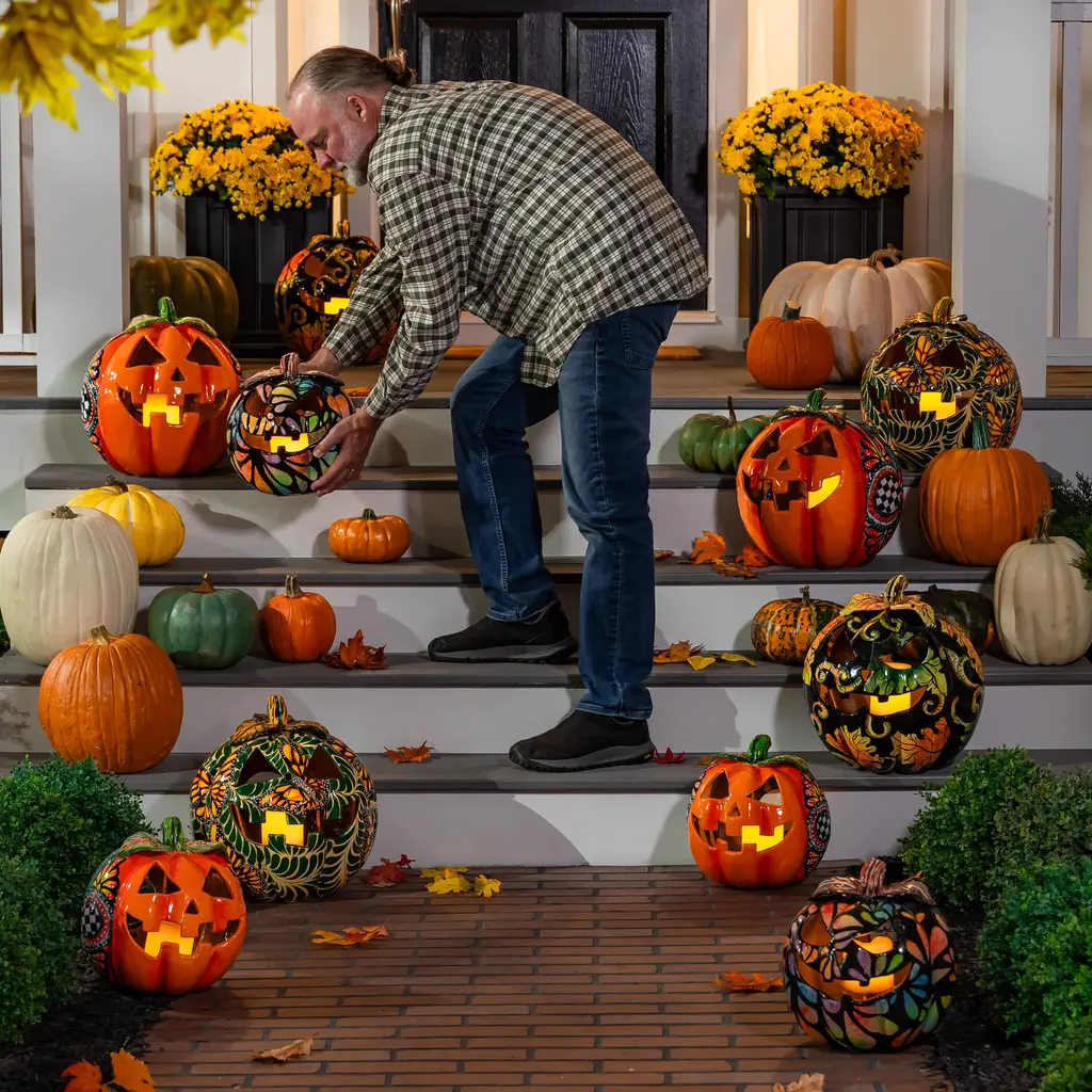 Bring quality craftsmanship to your home with this Talavera pumpkin, handmade by skilled artisans in Mexico. This accent piece is uniquely designed to add vibrance to any decor. The glaze coating is applied by hand and seals in the intricate artistry and gives the pumpkin a wonderful shine, making it safe for display indoors or out. Feature this piece in your living room, entryway, porch, deck and more. The hand-painted colors perfectly complement greenery, florals or neutral spaces in need of a colorful upgrade.