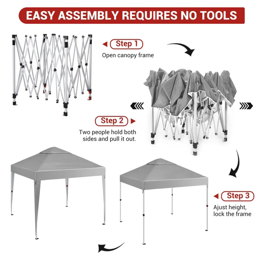 10 X 10 Ft Pop Up Canopy Tent, Height Adjustable Sun Shade Shelter With Wheeled Carry Bag, Waterproof Party Tent For Patio, Garden,grey