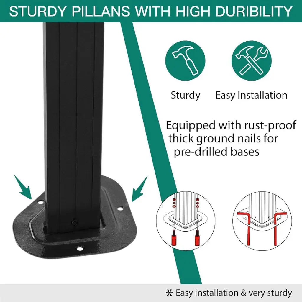 Weatherproof Aluminum Frame: Featuring a heavy-duty powder-coated aluminum structure, this gazebo resists rust, corrosion, and UV fading for long-term durability. Ground stakes and reinforced foot holes ensure unwavering stability in all conditions, keeping your shelter securely anchored through seasons of use. Year-Round Polycarbonate Roof: The advanced heat-insulated roof blocks 99% of UV rays while reducing heat buildup. Engineered with a strategic slope to prevent water pooling, it delivers reliable protection from intense sun and heavy rainfall, enabling comfortable outdoor enjoyment in any season.