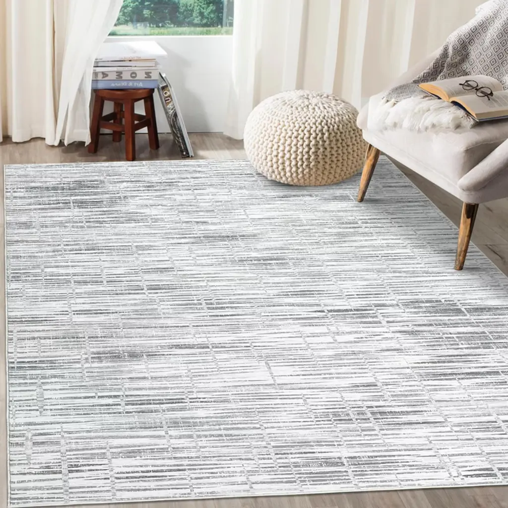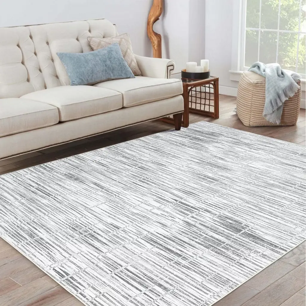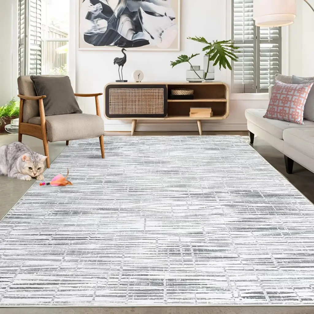 10 X 13 Ft Polyester Cashmere Imitation Gray Rectangular Hallway Bathroom Entryway Kitchen Office Foldable Line Printed Modern Washable Area Rug