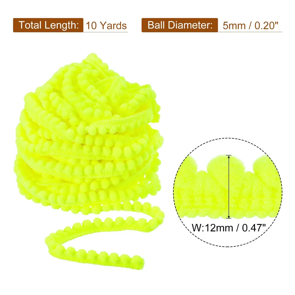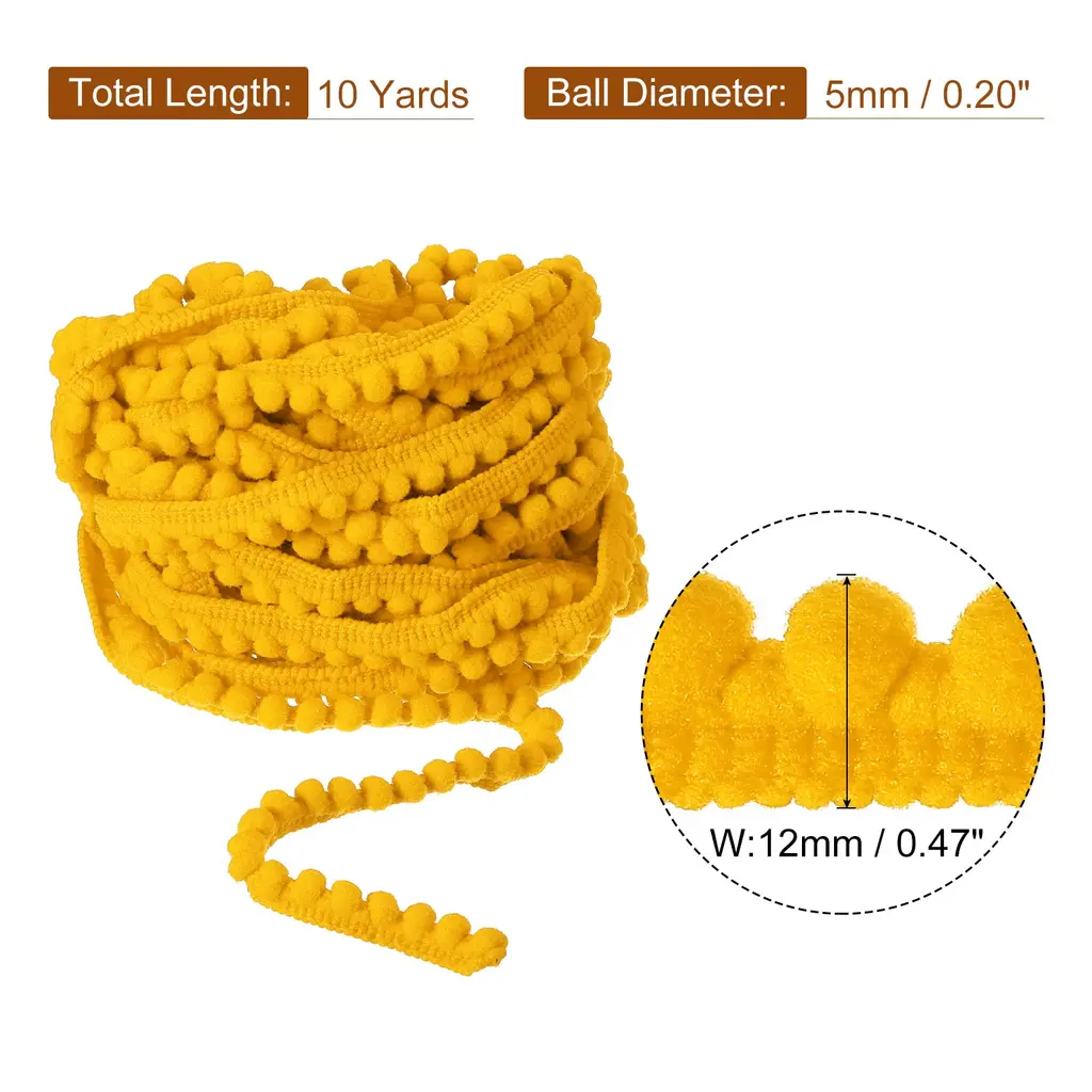 Description:Pom Pom Fringe Trim - Made of nylon yarn material, soft and comfortable to the touch. The tiny ball fringe trim is a decorative trim that is made up of 5mm diameter balls/poms that are attached to a cord.Unique Design - The pom pom trim ribbon features decorative balls that add an embellishment of color and texture to any project. Different color-matching styles for you to choose from and make your projects stand out from others. Whether you are looking for a bold, bright color or a pastel shade, we have something for everyone.Easy to Use - Our ball fringe trim is easy to use. Simply sew it onto your projects using a sewing machine or by hand. It's a great way to add a finishing touch to any DIY project without a lot of steps.Wide Application - The pom pom trim is a fun and versatile decorative element that can add a cute feeling to a wide range of DIY craft projects, like clothing, home decor, and accessories. Can be used for handmade materials, clothes and hat ornaments, home decoration, wedding decoration, bedding edging, curtains, scarves, bags, festival decoration, etc handmade projects.Specification:Material: Nylon YarnColor: RedBall Diameter: 5mm/0.20-inchTrim Total Width: 12mm/0.47-inchTotal Length: 10 YardsPackage Content:1pcs x Pom Pom Trim