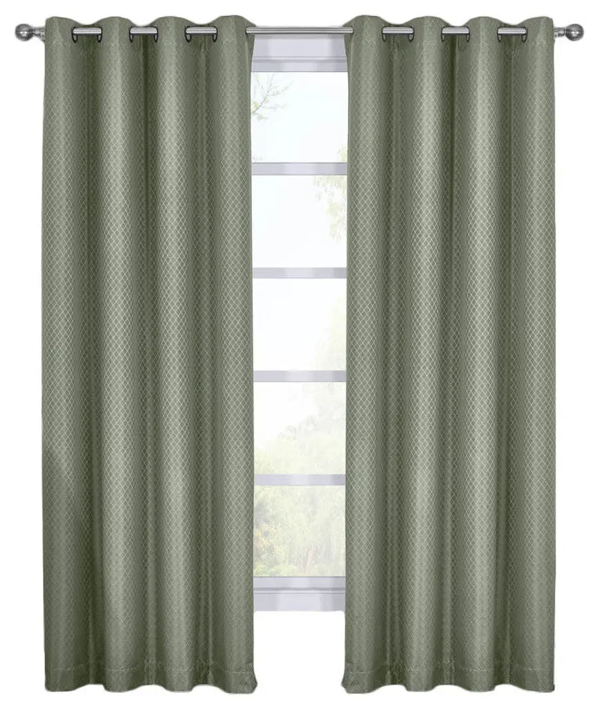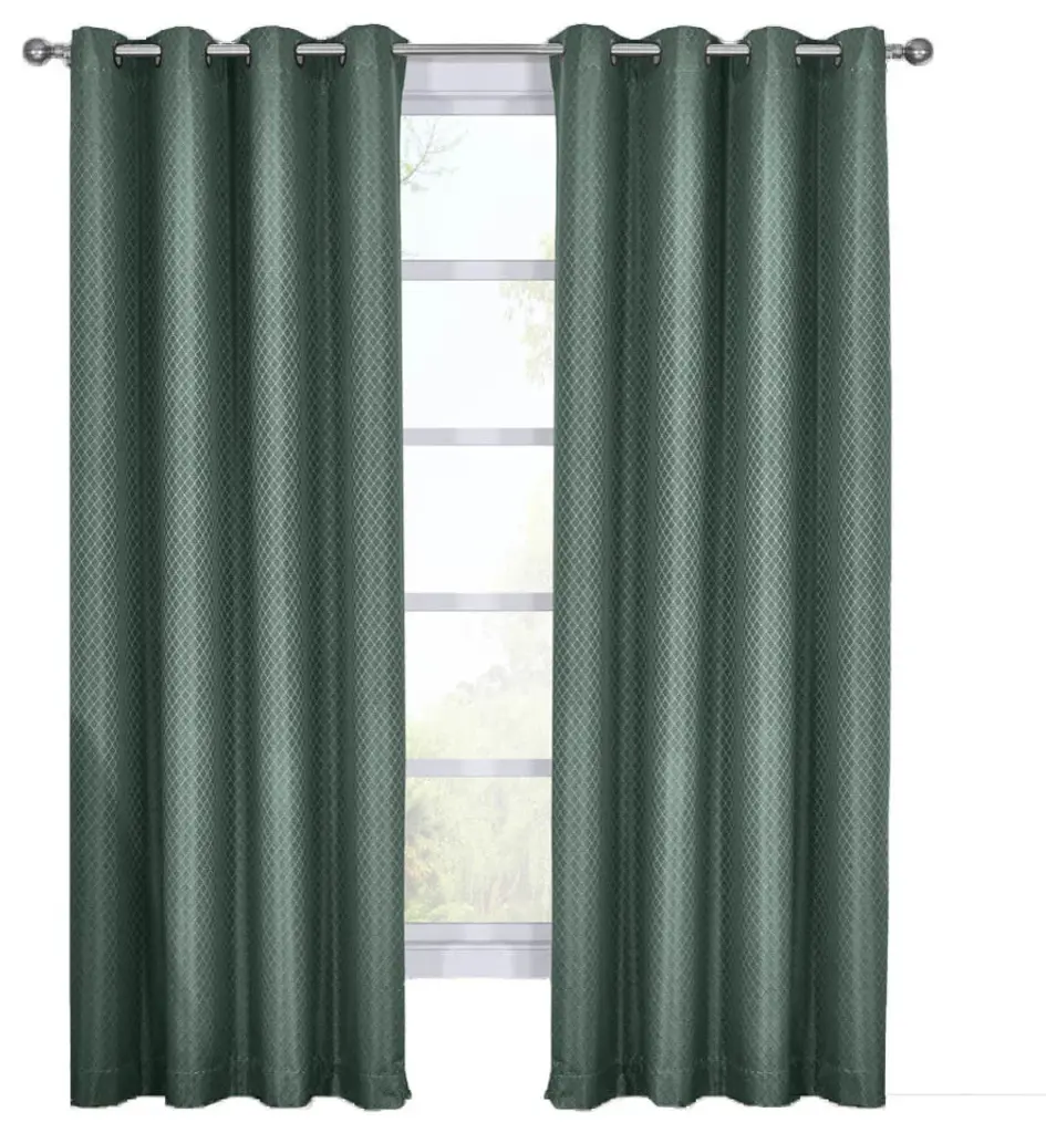 Our 100% Blackout Window Curtains were woven into modern diamond pattern with triple pass back thermal insulating coating to create a total blackout drapes. An amazing diamond design was converted into jacquard woven fabric to bring this theme to life on fabric. To create a total blackout effect the back side of the fabric went through 3 stages of coating each at different time intervals. • 100% Blackout Panels, blocks from sunlight and UV rays • Triple Pass Thermal Insulated Back side coating • Energy Savings, Privacy and Noise Reduction • Sold in Pairs (Each package contains two panels) • Royal Tradition Collection • Each Panel has 8 Grommets (1.6" inner grommet diameter) • 100% Polyester, Heavy weight Fabric • Machine Washable Available Sizes Include: • 108"W x 63"L Pair (54" X 63" each panel) • 108"W x 84"L Pair ( 54" X 84" each panel) • 108"W x 96"L Pair ( 54" X 96" each panel) • 108"W x 108"L Pair ( 54" X 108" each panel) • 108"W x 120"L Pair ( 54" X 120" each panel)