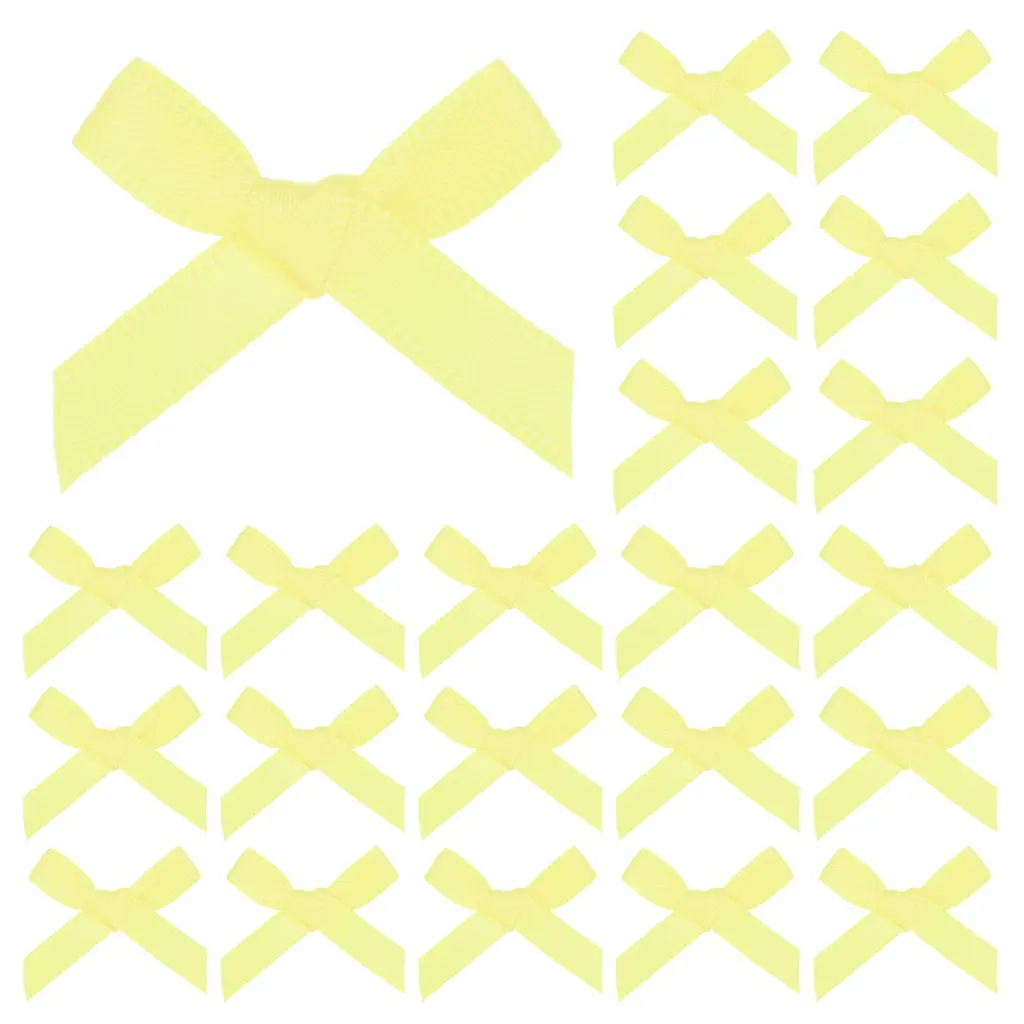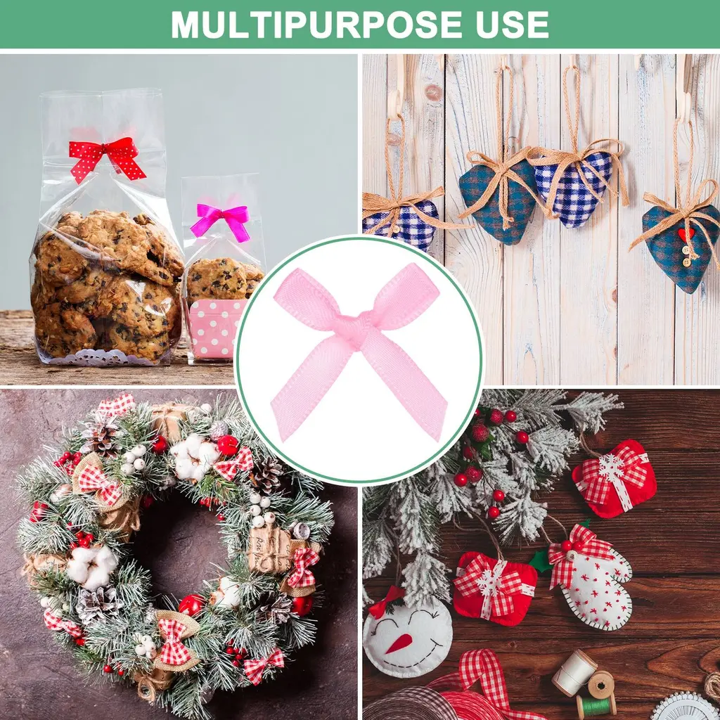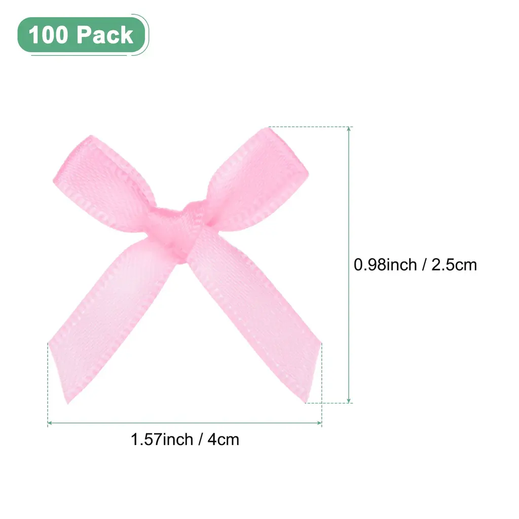 PRODUCT APPLICATIONSOur ribbon bows has various applications. They can be used in the hemming and decoration of leather goods, bags, sleeping bags, tents, and clothing. Because polyester ribbon is soft, they are mostly used for the hemming of softer fabrics.PRODUCT DETAILS & INCLUDE√ Material: Polyester√ Overall Size: 2.5 x 4cm/0.98x1.57 Inch(L*W)√ Package Includes:100 Pack x Mini Ribbon BowsPRODUCT ADVANTAGES1.Crafted from polyester plastic, our craft ribbon bows appliques offer fine texture, high washing fastness, no fading, smooth and wrinkle-resistant, flexible to the touch.2.Our satin ribbon bows feature a classic design, the product is bright in color, fashionable and new in design, and can be used on many occasions. It is suitable for hair accessories, clothing, Christmas gifts, baking decorations, gift box packaging, hotel decorations, wedding decorations, flower packaging, birthday arrangements, etc.INSTALLATION1. Choose the color of the Mini Ribbon Bow that matches your project or gift wrapping paper. 2. Use twist ties (not included here) or or glue to secure the mini ribbon bows to desired surfaces such as gift boxes, cards, or crafts. 3. Adjust the position of the bow if necessary to get the desired look.