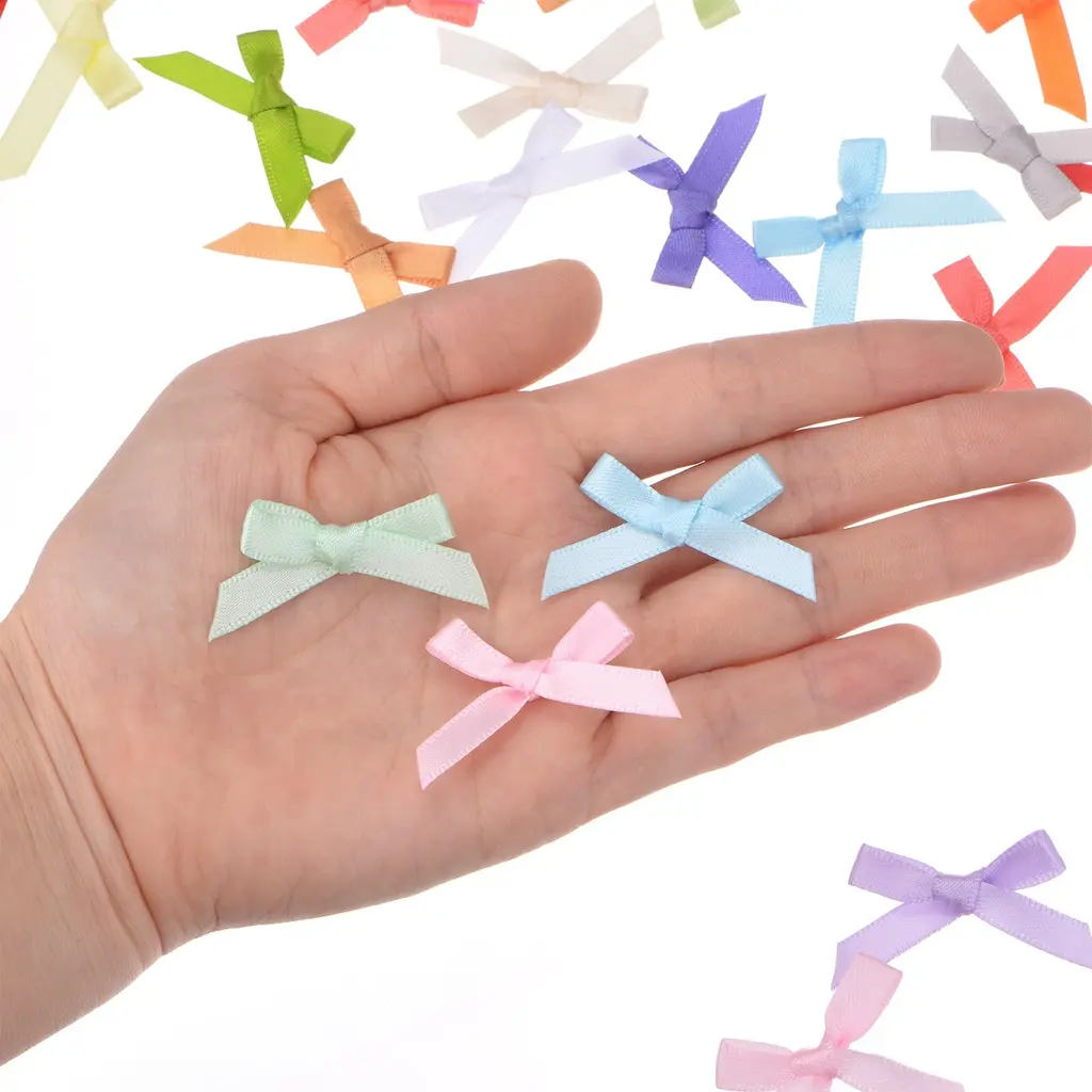 PRODUCT APPLICATIONSOur ribbon bows has various applications. They can be used in the hemming and decoration of leather goods, bags, sleeping bags, tents, and clothing. Because polyester ribbon is soft, they are mostly used for the hemming of softer fabrics.PRODUCT DETAILS & INCLUDE√ Material: Polyester√ Overall Size: 2.5 x 4cm/0.98x1.57 Inch(L*W)√ Package Includes:100 Pack x Mini Ribbon BowsPRODUCT ADVANTAGES1.Crafted from polyester plastic, our craft ribbon bows appliques offer fine texture, high washing fastness, no fading, smooth and wrinkle-resistant, flexible to the touch.2.Our satin ribbon bows feature a classic design, the product is bright in color, fashionable and new in design, and can be used on many occasions. It is suitable for hair accessories, clothing, Christmas gifts, baking decorations, gift box packaging, hotel decorations, wedding decorations, flower packaging, birthday arrangements, etc.INSTALLATION1. Choose the color of the Mini Ribbon Bow that matches your project or gift wrapping paper. 2. Use twist ties (not included here) or or glue to secure the mini ribbon bows to desired surfaces such as gift boxes, cards, or crafts. 3. Adjust the position of the bow if necessary to get the desired look.
