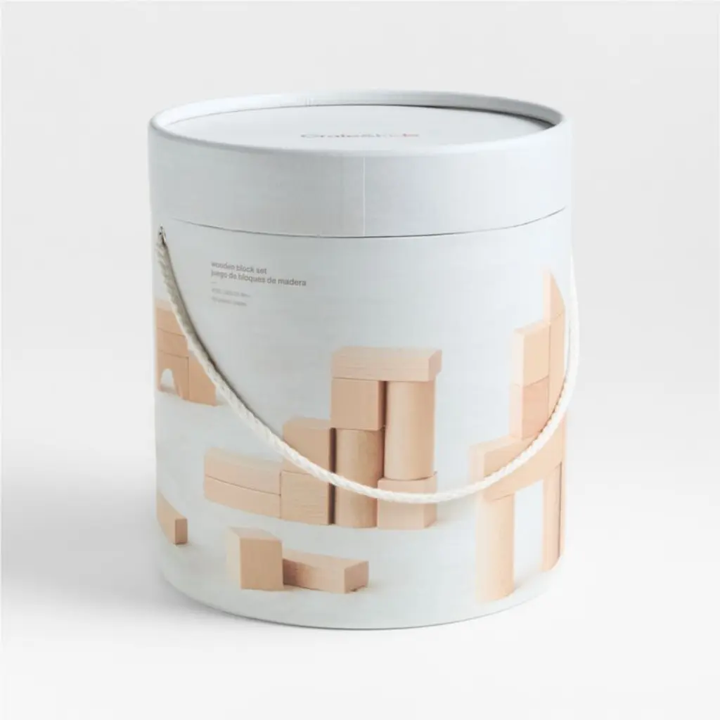 A foundation of childhood play, building blocks help little ones master motor skills while also encouraging their imaginations to run wild. Our fresh rendition of the toy is crafted from FSC®-certified wood and nothing elsefor a sturdy, beautiful set that can be enjoyed for years and passed down. It includes a variety of shapes to allow for creative construction and comes in a round container for easy storage.