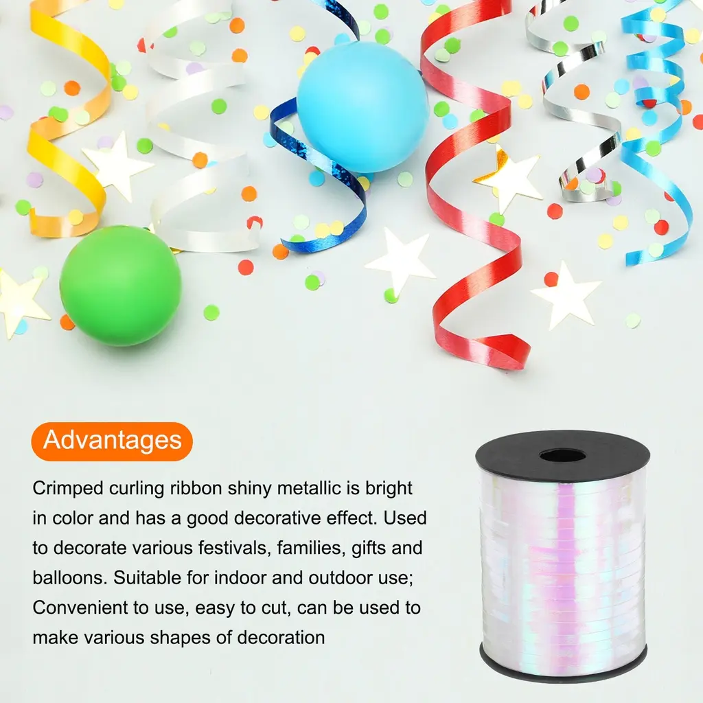 What is this?The metallic iridescent shiny holographic glossy ribbon roll is bright in color, and suitable for various gifts, home, and party decorations, used for wrapping boxes, baskets, gifts, Christmas trees, decorations, balloon decorative metallic ribbons, handicrafts, scrapbooks, etc. It is suitable for weddings, Christmas, birthdays, and partiesWhat will I get?Curling ribbon, is in size of : 5mm(3/16-inch) width, 100 Yards total lengthIn the package of: 1 Roll x Curling ribbonIs there any advantages of the product?Crimped curling ribbon shiny metallic is bright in color and has a good decorative effect. Used to decorate various festivals, families, gifts and balloons. Suitable for indoor and outdoor use; Convenient to use, easy to cut, can be used to make various shapes of decorationHow to use it?Steps of installation: 1. Select metallic crimp ribbon with appropriate size; 2. Cut to the length you want; 3. Used as decorative ribbon to decorate balloons, gifts, festivals, weddings, etc.What should I notice?Please select the appropriate size metallic crimp ribbon