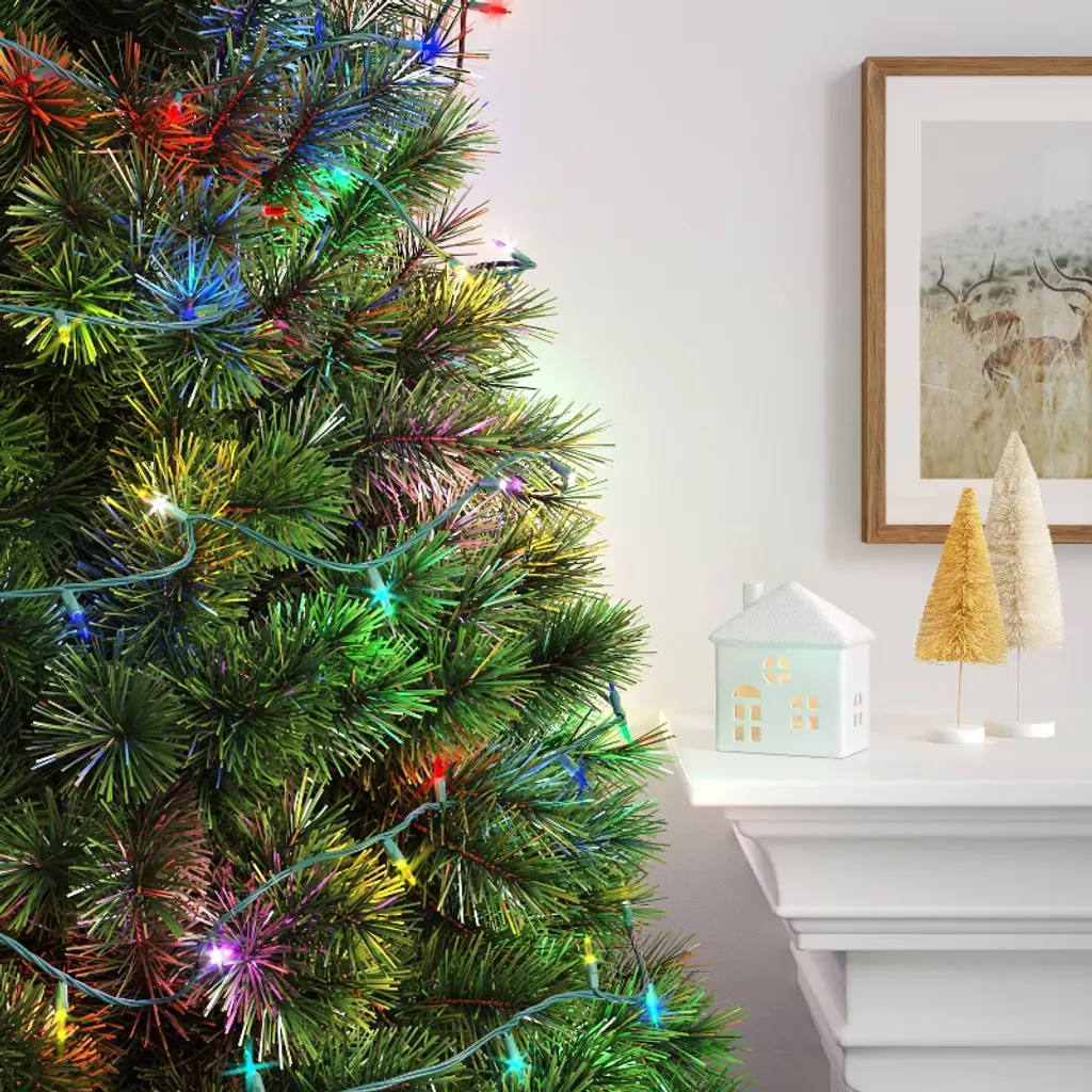 Make your holiday season more merry and bright when you decorate with this 100-Count LED Smooth Mini Christmas String Lights with Green Wire from Wondershop™. A green wire suspends 100 LED smooth mini bulbs to cast a festive glow to your home's winter wonderland. Suitable for both indoor and outdoor use, you can simply drape these string lights around on your front door, over shrubs, along a balcony or porch railing, or even on across fireplace mantel or down your stairway to illuminate your space with festive style. Plus, can connect up to 45 light strings end-to-end. Welcome to the Wondershop™.