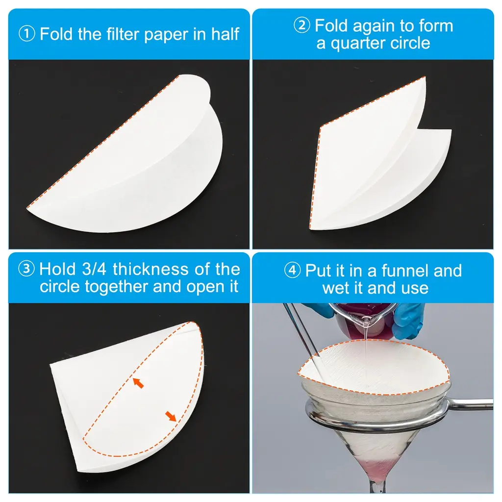 Application: The Qualitative Filter Paper is usually used for general qualitative analysis and separating coarse and gelatinous precipitates from solutions in the lab or chemistry applications, but can't be used for quality analysis.Specifications: Material: Paper; Color: White; Diameter: 9cm / 3.54 inch; Flow Speed: Medium; Ash Content: ≤0.15%; Filtration Rate: 35-70 s; Bore Diameter: 15-20um; Packing List: 100 x Qualitative Filter PaperAdvantages: Filter paper is a kind of paper with good filtering performance. The paper is loose and has a strong absorption performance for liquids.Instruction: Qualitative filter paper usually residue more ash, its ash content is higher than quantitative filter paper, and it has a certain amount of ash after burning.NOTE: Please check the size carefully if you are concerned about this.The Qualitative Filter Paper is usually used for general qualitative analysis and separating coarse and gelatinous precipitates from solutions in the lab or chemistry applications, but can't be used for quality analysis.SpecificationsMaterial: Paper; Color: White; Diameter: 9cm / 3.54 inch; Flow Speed: Medium; Ash Content: ≤0.15%; Filtration Rate: 35-70 s; Bore Diameter: 15-20um; Packing List: 100 x Qualitative Filter PaperAdvantageFilter paper is a kind of paper with good filtering performance. The paper is loose and has a strong absorption performance for liquids.InstructionQualitative filter paper usually residue more ash, its ash content is higher than quantitative filter paper, and it has a certain amount of ash after burning.NOTE: Please check the size carefully if you are concerned about this.