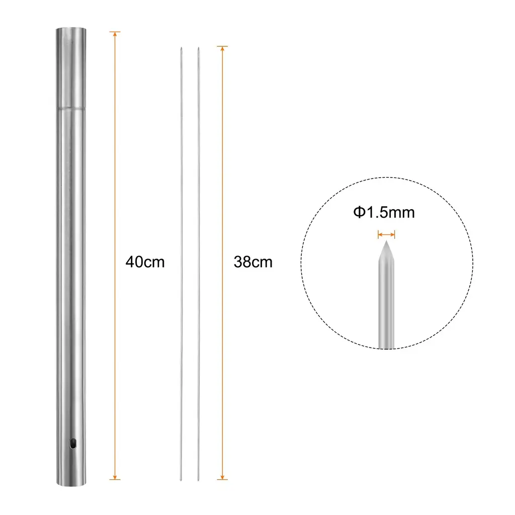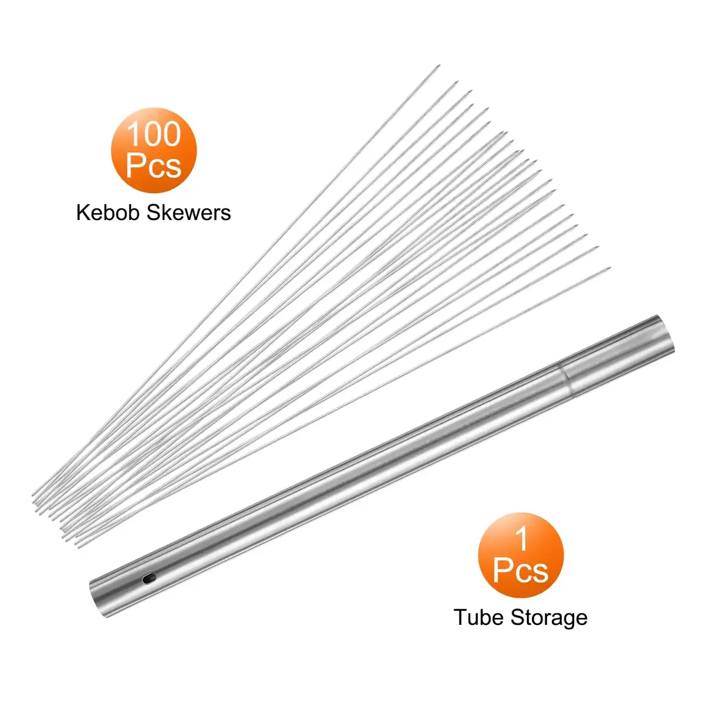100pcs Kebob Skewers 40cm X 2.8cm Round Sticks With Tube Storage - 40cm X 2.8cm - Silver