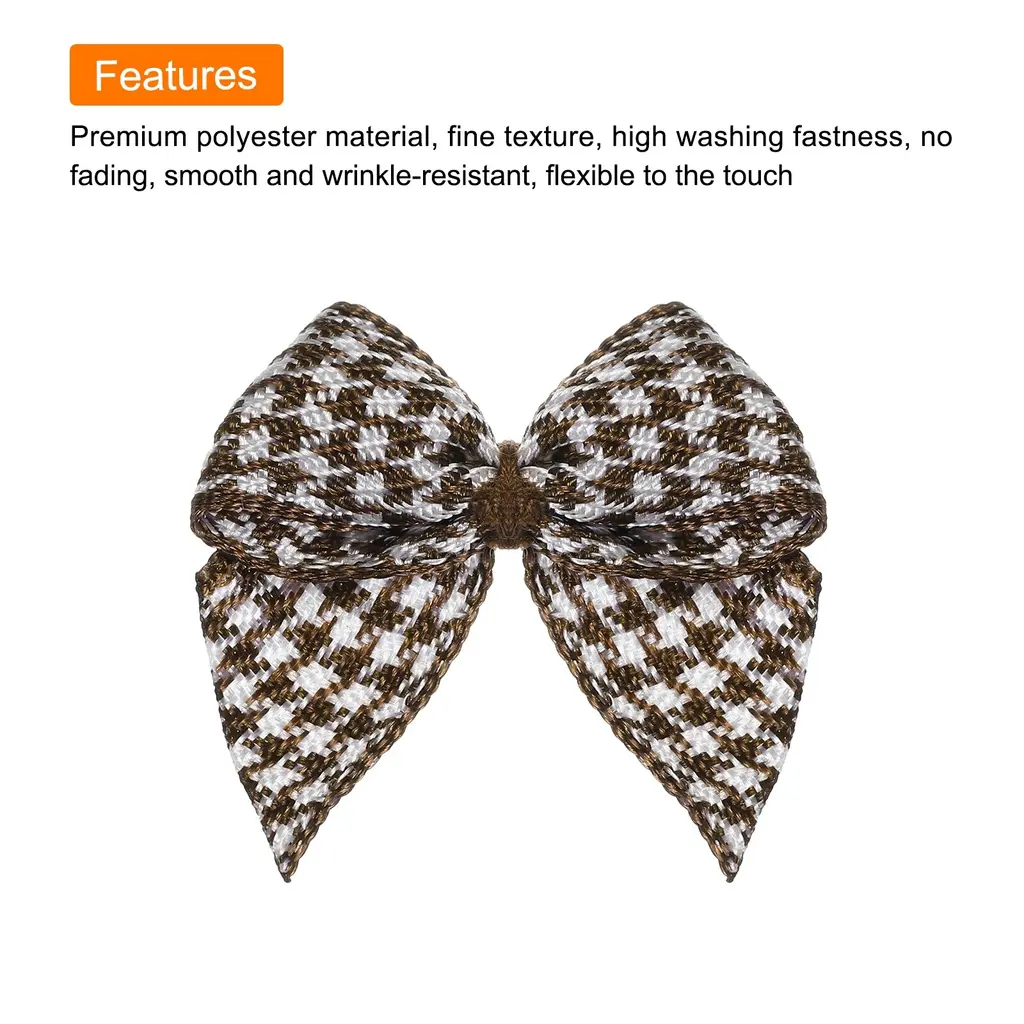What is this?These ribbon bows are mostly used in the hemming and decoration of leather goods, bags, sleeping bags, tents, and clothing. Because polyester ribbon is soft, they are mostly used for the hemming of softer fabrics.What will I get?The Mini Ribbon Bow, we provide here, is in size of:Material: PolyesterColor: BrownDimension: 1 x 1 inch (W*H)In the package of: 100 x Mini Ribbon BowsAre there any advantages of the product?Polyester material, fine texture, high washing fastness, no fading, smooth and wrinkle-resistant, flexible to the touch.The product is bright in color, fashionable and new in design, and can be used on many occasions. It is suitable for hair accessories, clothing, Christmas gifts, baking decorations, gift box packaging, hotel decorations, wedding decorations, flower packaging, birthday arrangements, etc.How to use it?1. Choose the color of the Mini Ribbon Bow that matches your project or gift wrapping paper. 2. Use twist ties (not included here) or or glue to secure the mini ribbon bows to desired surfaces such as gift boxes, cards, or crafts. 3. Adjust the position of the bow if necessary to get the desired look.What should I notice?Manual measurement, please allow +/-3mm errors in size.Please note that there may be a slight color difference between the picture and the actual product, and the color is subject to the actual product received.